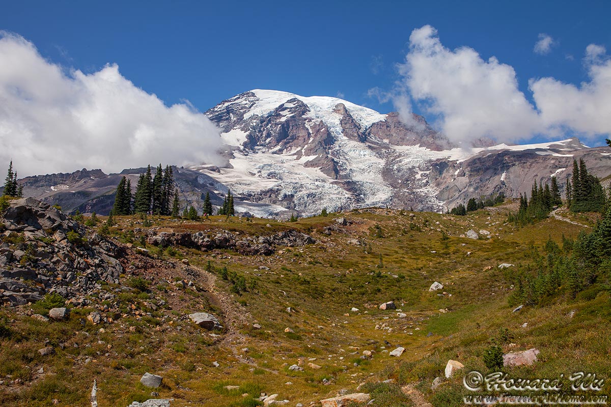 As we climbed higher on the trail, Mount Rainier became even more beautiful and imposing, dominating the sky.
