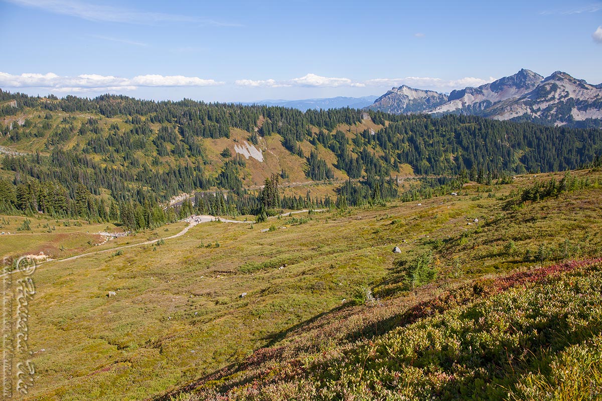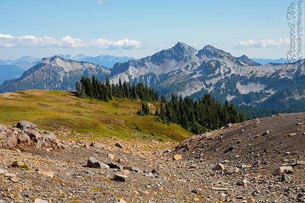 Looking back, the jagged Tatoosh Range was clearly in view.