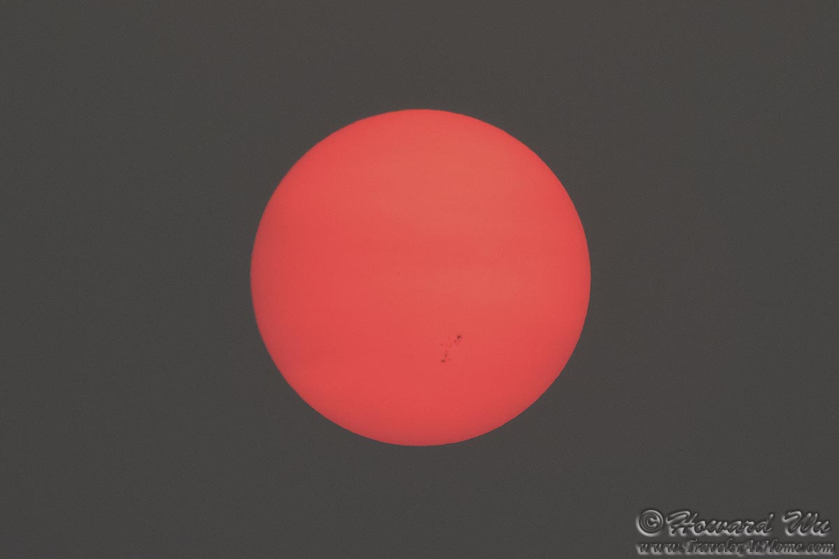 Then, because of an unexpected event, we had to abruptly cut short our trip and head to Houston. On this day of our departure, the smoky from the wildfire in the Cascades drifted over the Puget Sound, even in midday, the sun had an eerily orange-red color. The following picture was taken at Seattle-Tacoma Airport, you can actually see the sunspots.