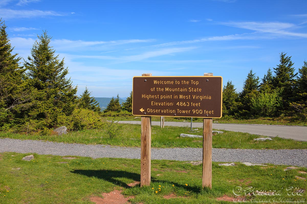 Spruce Knob -- " A sign commemorates 'the Top of Mountain State'"