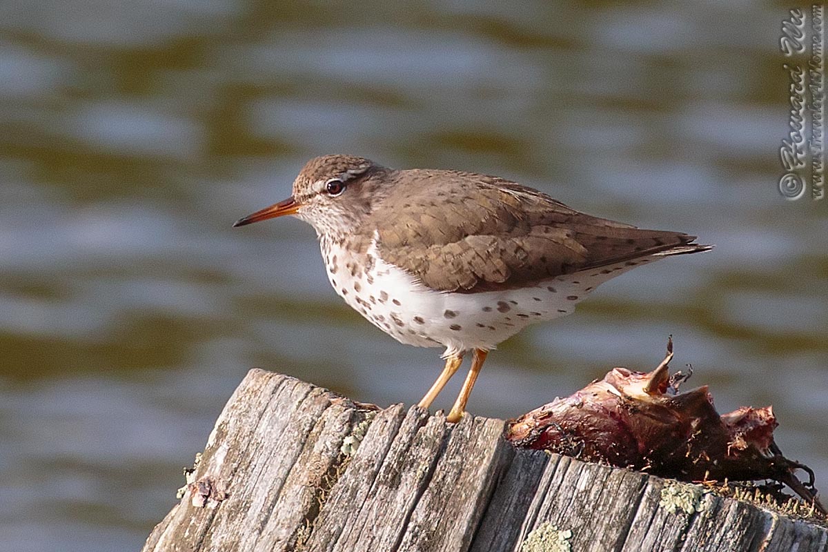 A sandpiper on the shore of the lake caught my eye. Its bobbing and wagging tail gave it away – this was a Spotted Sandpiper. They were also on their (latitudinal) migration path. West Virginia is at the southern edges of their breeding range, it is possible that they might settle down here. This one certainly had its breeding plumage, with the dark spots showing on the chest (these spots disappear in the winter, adding much to the confusion of identifying sandpipers).