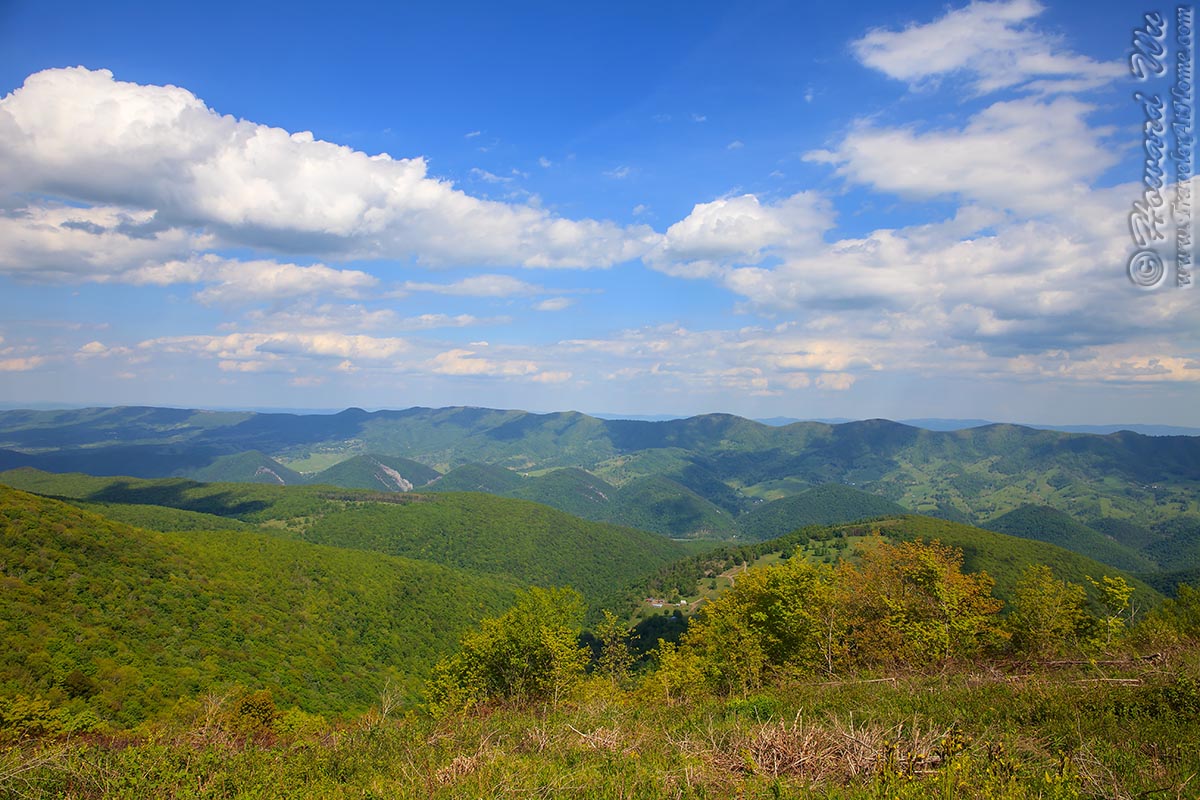 A sign of the Eastern Overlook came up; I pulled off to the overlook. A country couple were hugging and kissing outside their car at the overlook; they were not pleased to see me pulling off. “You two, go get a room”, I yelled at them. Actually I did not say that but just ignored them. Nice view of the lower hills and valley below. I took out my camera and took some pictures. The couple left.