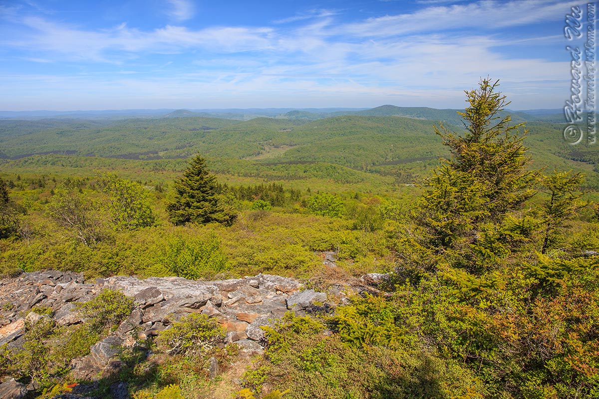 On top of the world again! For some time I was the only one there. All the rolling hills and rugged ridges were below me. Spring was at its last leg now, but at some of the higher slopes and peaks there were still smudges of the light yellow-green of new leaves. The day was getting hot, and I had to leave soon, but for a moment, I tried to take it all in. I took the Whispering Spruce Trail again, stopping at every overlook along the way. What does it mean by being a traveler at home? It is this: every trip, near or far, is once-in-a-lifetime. Spruce Knob is just over 170 miles from home, surely if I want I can drive here any weekend and spend a night in one of the campsites, or I can even drive back on the same day. But will I? Truth is, having lived in Virginia for more than a dozen years, I have been to Seneca Rocks just once, and this was my first time to Spruce Knob. There are other entanglements of life, and there are other places. Every trip is unique; even if I go back to the same places again, they will change, and I will change. Every moment is to be savored.