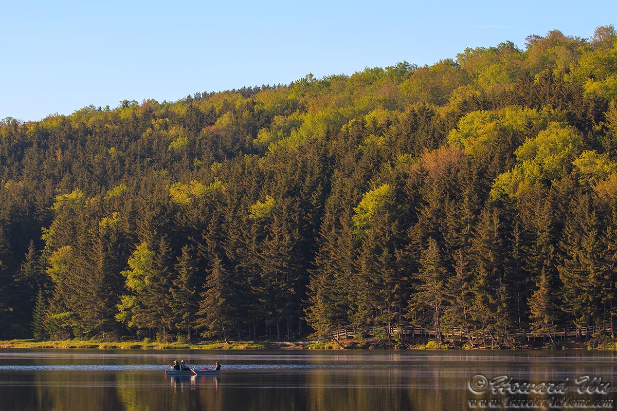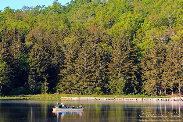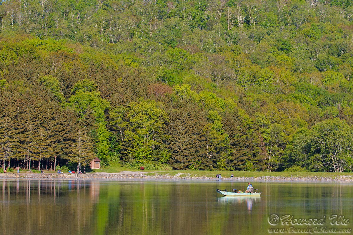 Spruce Knob Lake -- "the lake is surrounded by gentle hills that are covered with a mix of conifers and hardwoods"