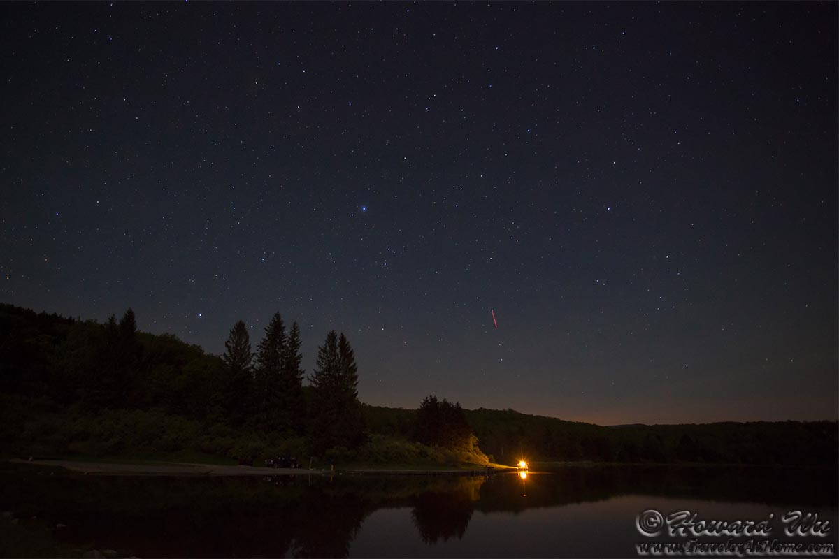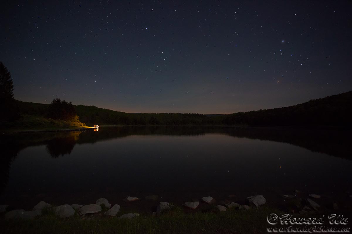 Spruce Knob Lake at night -- "The sky was also not free of manmade artifacts"