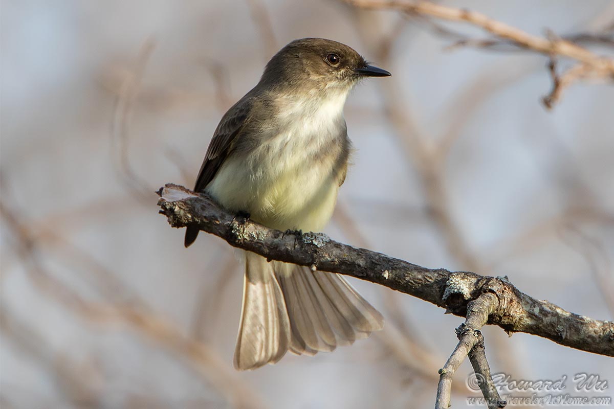 Update (1-12-2017): I made a brief visit to this location again and quickly located the bird. This was my first sighting of this bird in the new year. This was a windy day and the bird was all fluffed up. It is funny to see that the branch that it perched on seemed to go through the bird!