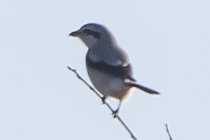 One of the last beautiful days of autumn! Normally I would go to the mountains to go hiking, see the fall foliage, sunset, etc., but today (Oct. 29, 2016) I had a different plan. A Northern Shrike has been reported in my area. Sometimes, we get Loggerhead Shrikes here (this bird was initially identified as such), which is already pretty rare, but Northern Shrike? Very rare. In the morning I made a trip to this area -- this is Sully Woodlands, a managed woodland/grassland habitat. After some searching, a few birders and I located the bird. Unfortunately, at the time the bird was far and backlit, all I got was pictures like this one: