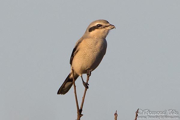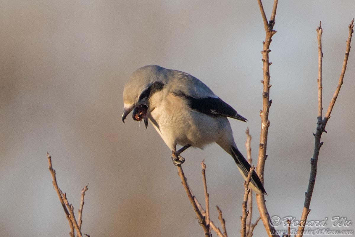 Soon I located the shrike again. This was birding/bird photography experience at its best: the bird was relaxed and accommodating; it allowed myself and a few other birders to get fairly close (although we maintained a respectful distance at all times). The late afternoon sun was soft and warm. The bird would fly to the ground and catch some insect prey and gobble it down; I even saw it regurgitate its food at one point (see the 3rd picture below).