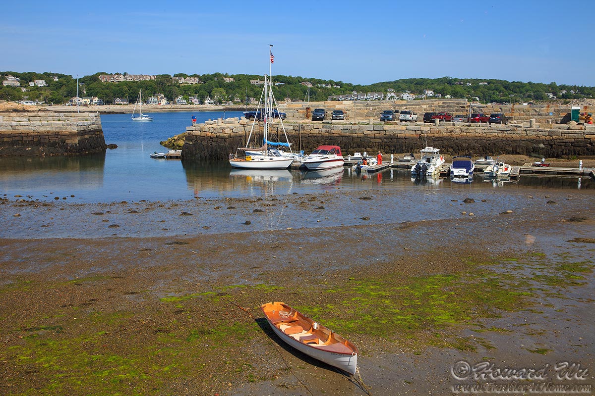 At the harbor, a wooden dory beached at low tide seemed so picturesque on this brilliant day.
