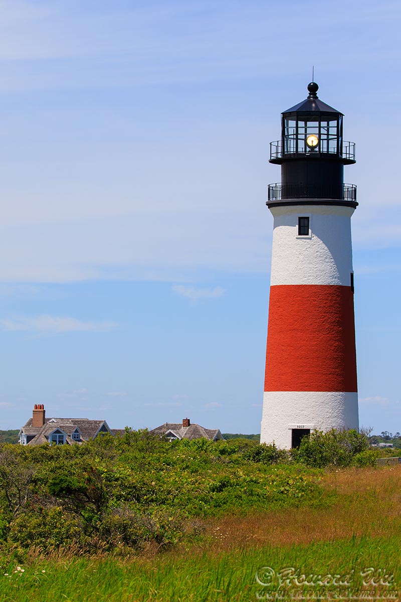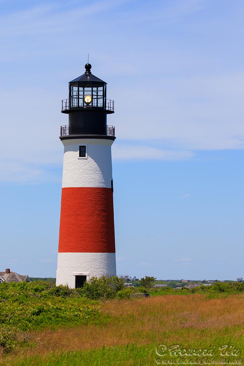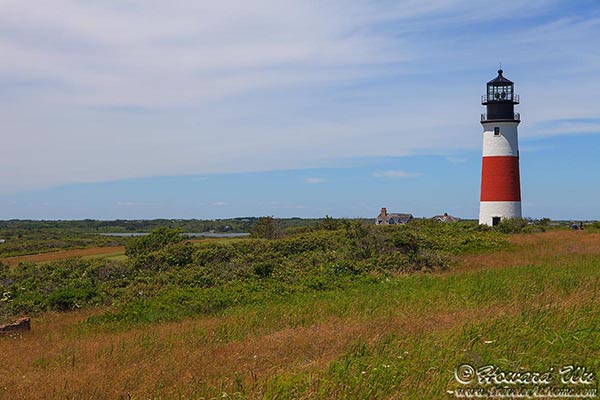 A little beyond the Sconset Bluff Walk stands Sankaty Head Lighthouse, a stately and imposing structure on the cliff overlooking the ocean (it actually has been moved back from closer to the ocean due to erosion of the cliff).