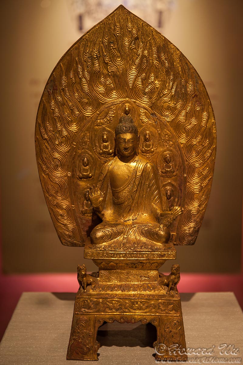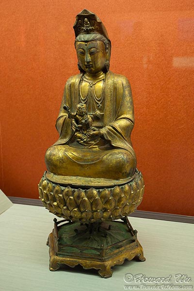 At the time of our visit, there was also extensive exhibits of Buddhist sculptures. The first one is the Sitting Bhudda of North Wei Dynasty (青銅鎏金釋迦牟尼佛坐像, from about 1,500 years ago), I rather lost track of the other ones.