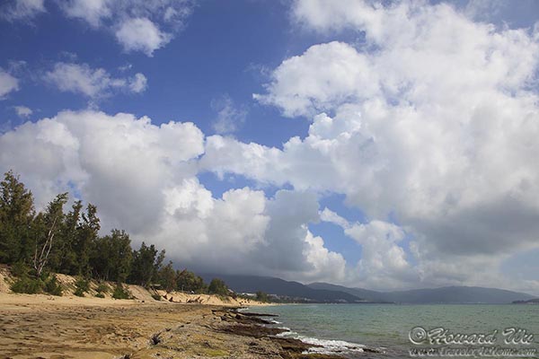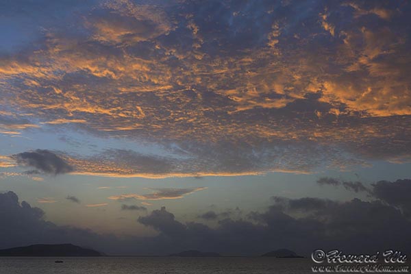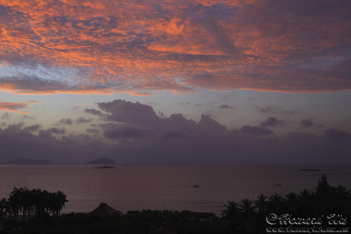 Our first day in Sanya was met with cloudy weather, but the sky cleared up on the second and third day. In fact, these two days greeted us with nice dawn and sunrise, especially on the second day, the cloud patterns at dawn were intricate and breathtaking. From Yalong Bay, one cannot see sunrise or sunset directly (the sun is blocked by either islands or mountains), but the magic hours of early morning and late afternoon still hold their spell.