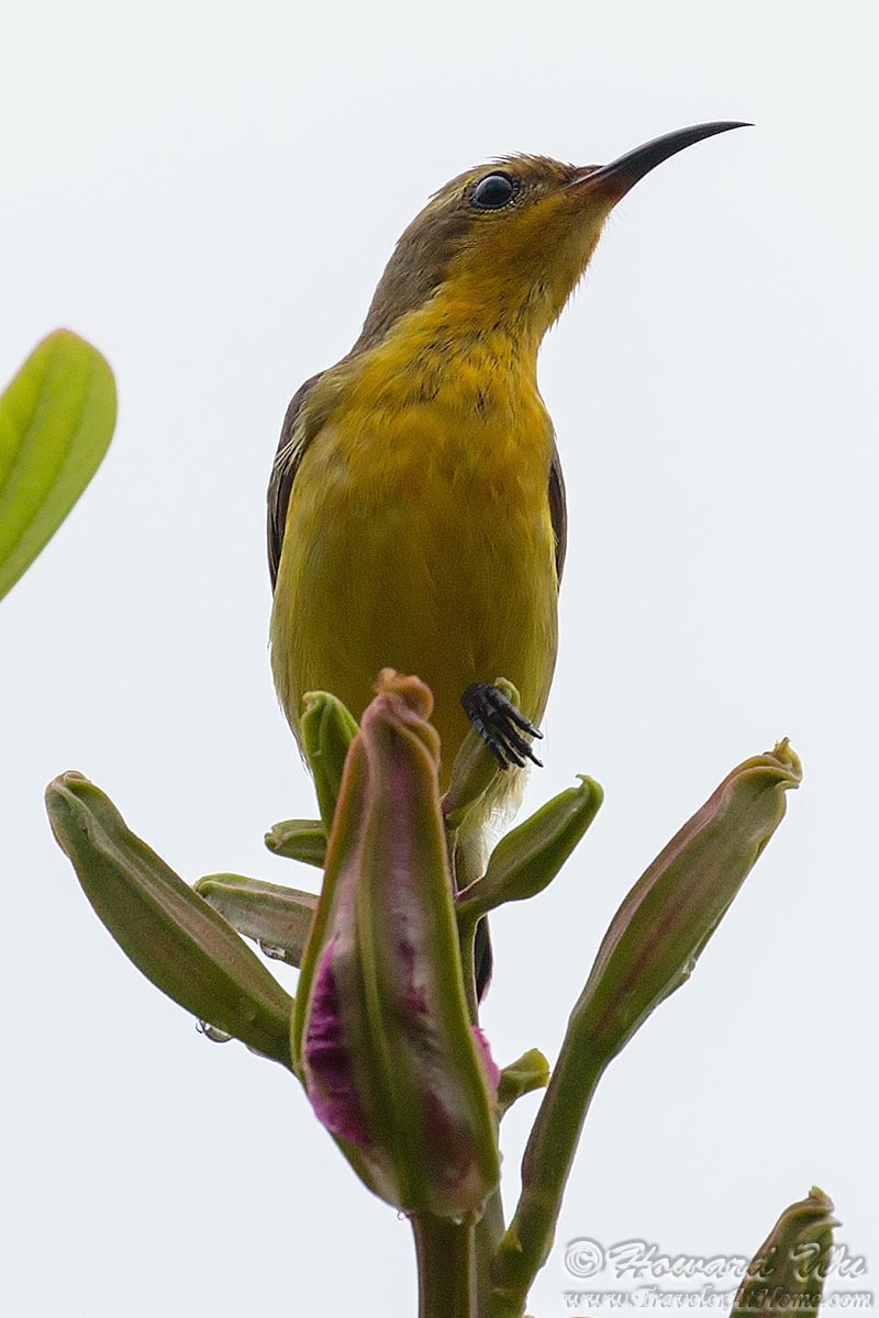 So these were the birds that I had seen before -- they were exciting regardless, but I also did see a few new birds. One of these is the Olive-backed Sunbird. I saw it on our second day in the hotel garden, although I did not know its exact species, I instantly recognized it as a new bird, the first of the Sunbird family that I had ever seen. True to its name (the scientific name of the family is Nectariniidae, Nectar-drinker?), it busily probed flowers for nectar.