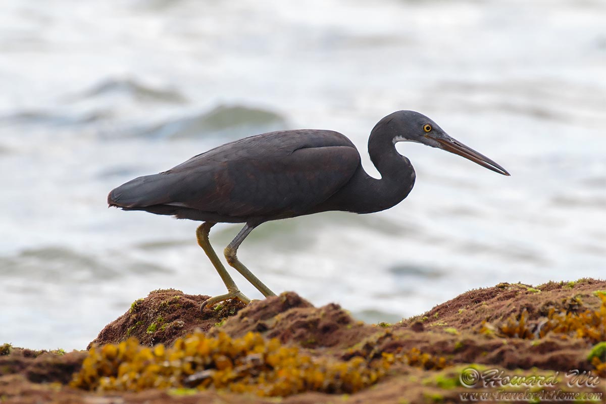 Another instantly recognized new bird was found on the beach -- this was a Pacific Reef Heron, when I saw it from a distance while taking a walk. It eventually allowed me to approach to a fairly reasonable distance and get some decent pictures.