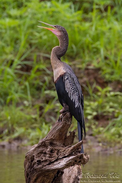 Of course, not every bird I saw was new -- there were Green Herons, Little Blue Herons, Great Egrets, Snowy Egrets, etc. in or along the river that I had seen in North America. The following picture is of an Anhinga which I had seen in Florida and Texas.
