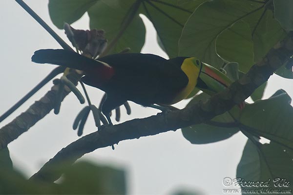 While we were on the shuttle, suddenly the tour guide exclaimed "toucans!", and I got my first glimpse of these colorful, huge-billed birds. These were the Keel-billed Toucans, otherwise known as Sulfur-breasted Toucans or Rainbow-billed Toucans. Unfortunately I had to shoot this picture through the bus window and it was heavily backlit, but its colorful bill still shone through.