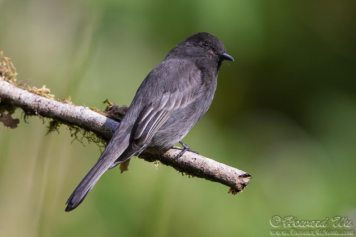 Almost without trying, I tallied 23 new species of birds (or 22, depending on which guidebook you use, more on this below) on this trip. Thus, in two trips, my total of new birds exceeded 100. The total for this trip would have been much higher had I not taken the first one, obviously, as many birds I saw on this second trip I had already seen on the first. The bulk of the birds I have seen and photographed were at the Bosque de Paz Lodge in Bajos del Toro because of the length we stayed (4 days, or more than half of our total trip time), and the environment (it is right next to Juan Castro Blanco National Park. One of the first birds I saw upon arrival was a couple of Black Phoebes hawking insects outside the lodge. I had seen them before in California, but it was alwasy good to be greeted by an old friend. Another "old friend" is the flock (20-30) of Black Guans that hang out around the hotel grounds all the time -- they have become dependent on the bird feed that hotel staff put out, and they have become very tame (which is not really a good thing). (Click on each image to see the high-resolution version)