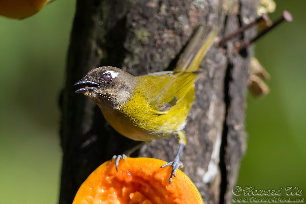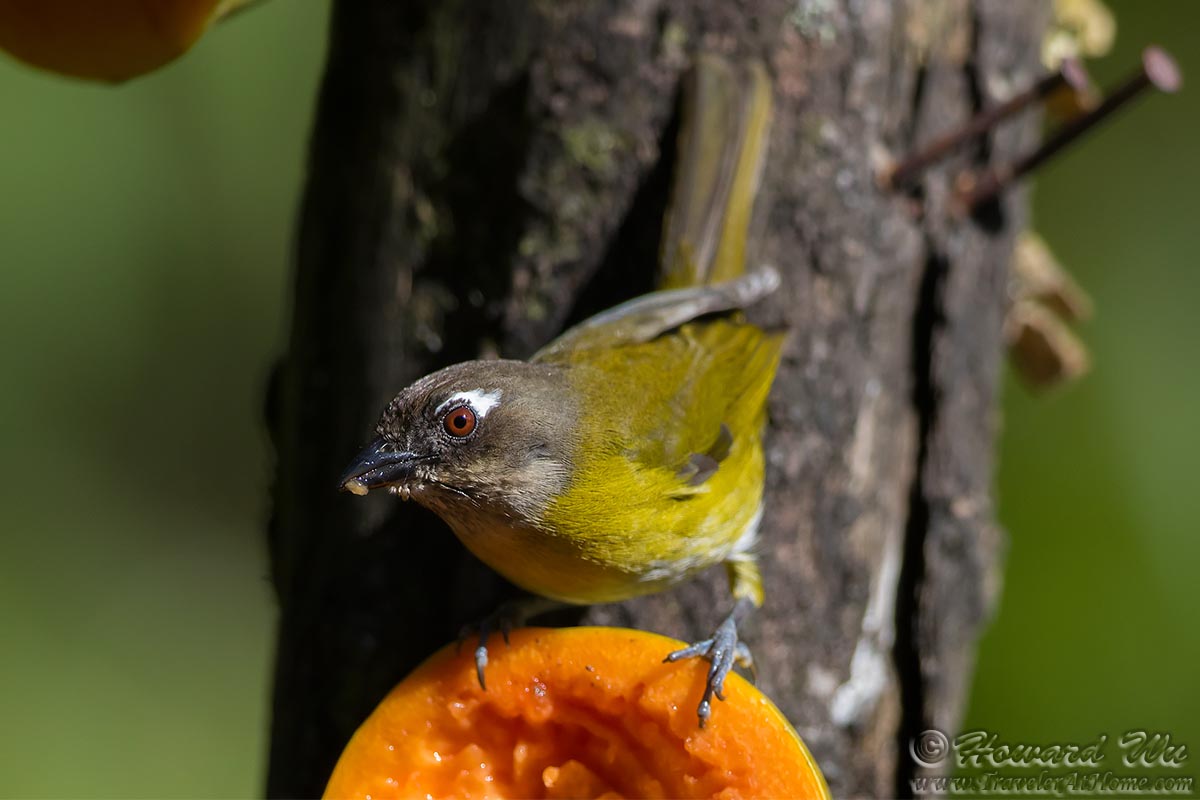 The hotel staff put up a fruit feeder, many fruit-loving birds came to feed. Most numerous among these are the Common Bush Tanagers (Common Chlorospingus, whose name has been recently changed) and Silver-throated Tanagers, both were new to me.