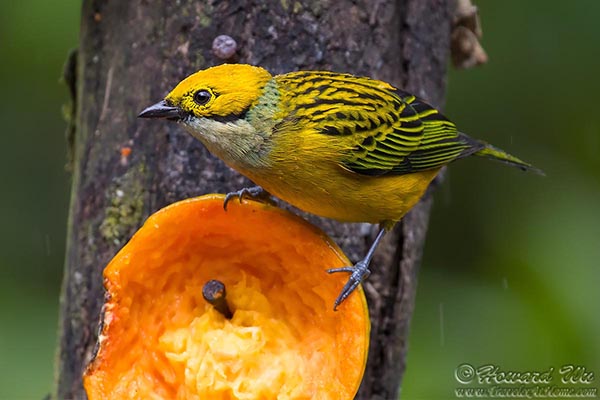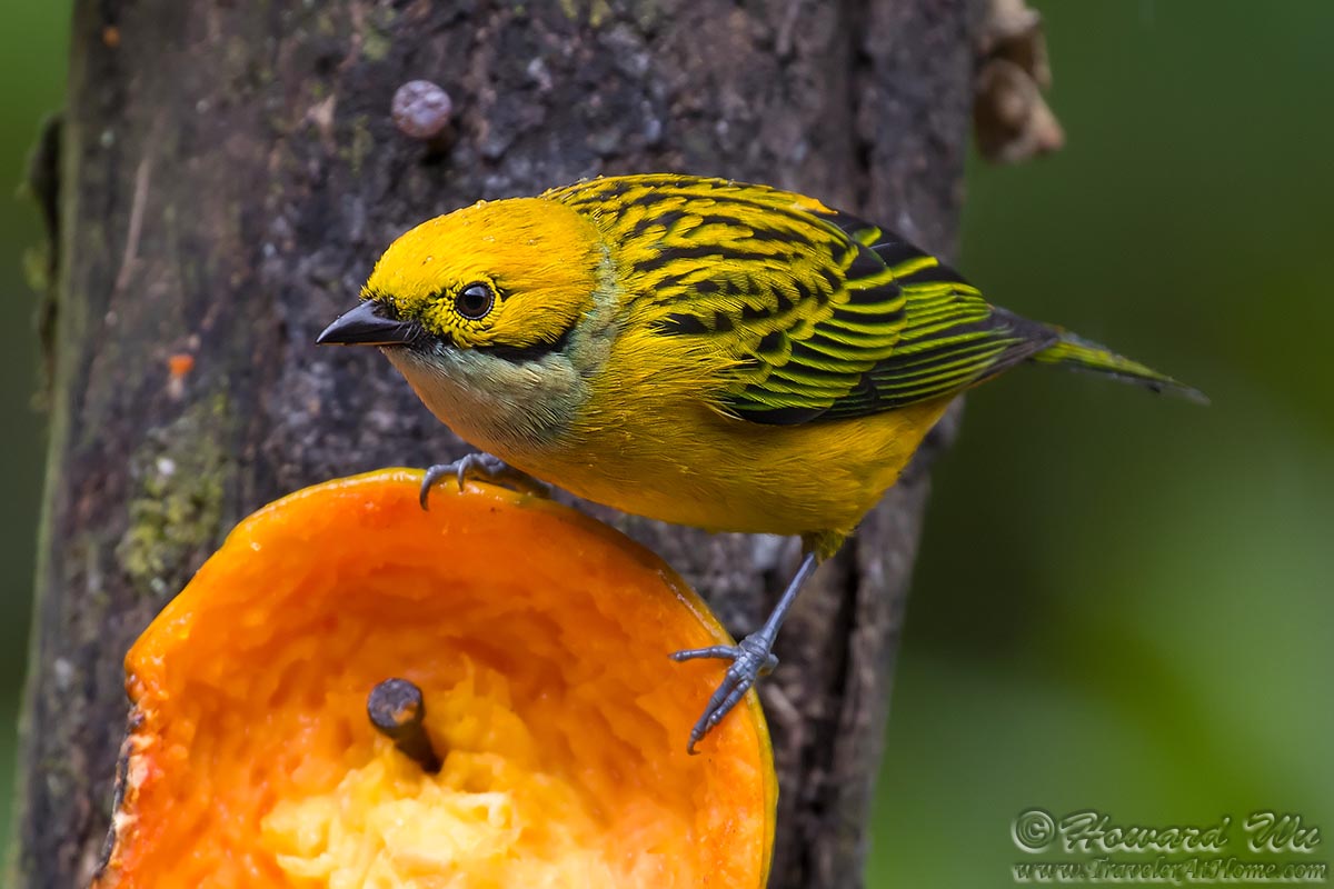 Another active bird around the hotel was the Yellow-thighed Finches, a bird aptly named (but they seem to favor grain instead of fruits).
