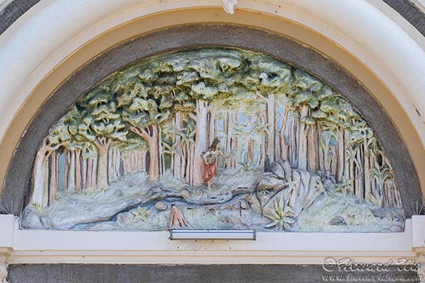 The outside of the church is adorned with many religious sculptures and reliefs.