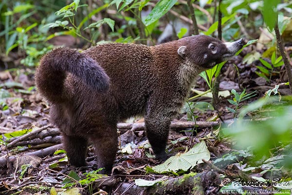On my (abandoned) hike to the waterfall, a Coati, or Coatimundi, crossed the trail right in front of me. It acted rather obliviously, and I thought that it must have had bad eyesight and did not see me, and that I was downwind and it did not detect my scent.