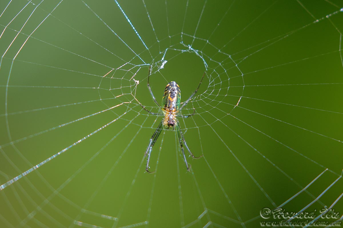 Another colorful creature is a spider, perhaps a Orchard Orbweaver, Leucauge venusta.