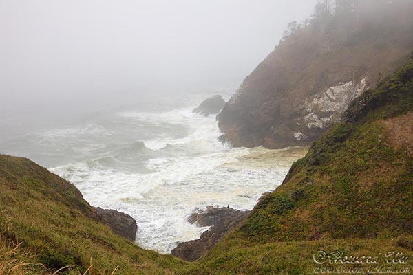 On our first day, we drove to the coast -- we passed Astoria and crossed the bridge into Washington State. This was a sunny and hot day in Portland, and we were hoping to get clear view of the ocean from here, but no such luck: the coast was still enveloped in seemingly perpetual fog.