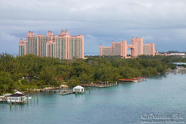 It then started to rain pretty heavily and we went back to the ship. After some time, the rain lessened, although the sky was still gray. From the ship, we could see the mega-resort Atlantis and Paradise Island.