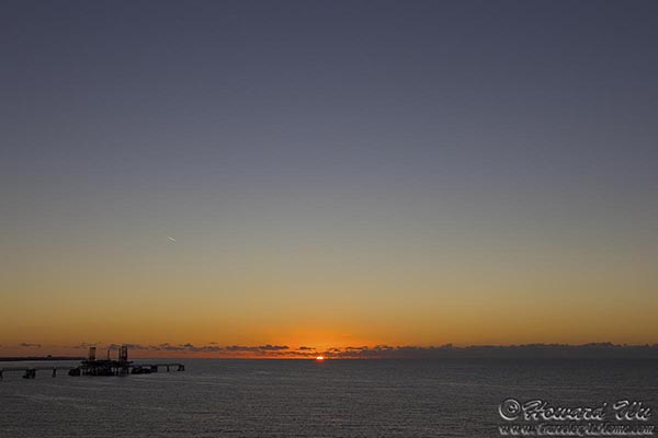 After a night of smooth cruising, at daybreak we reached Freeport. The sun just broke out of the horizon as the ship entered Freeport harbor and I took pictures from our patio. This promised to be a nice day.