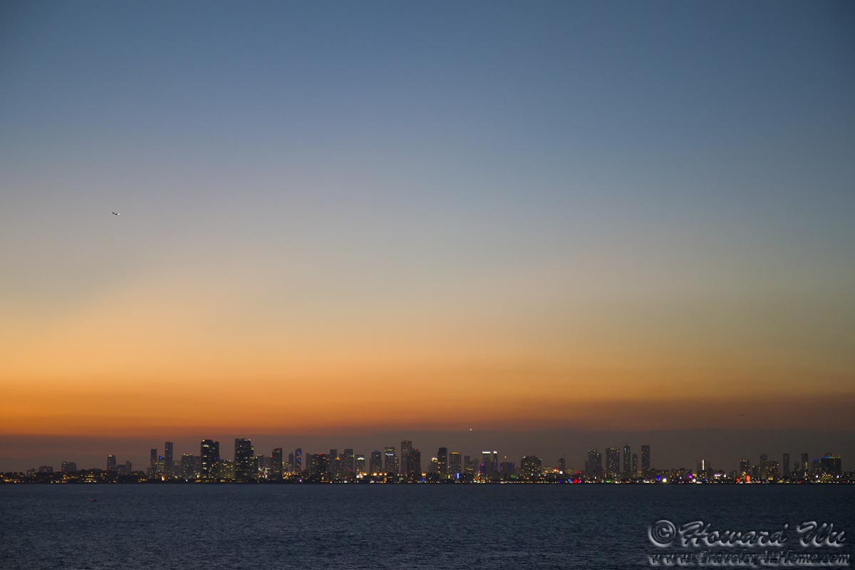 From the patio, even before the ship undocked, the view was superb, with the glistening Miami and South Beach in front of us. Then, as the ship left the port of Miami at sunset, the skyline of Miamia faded into the distance.