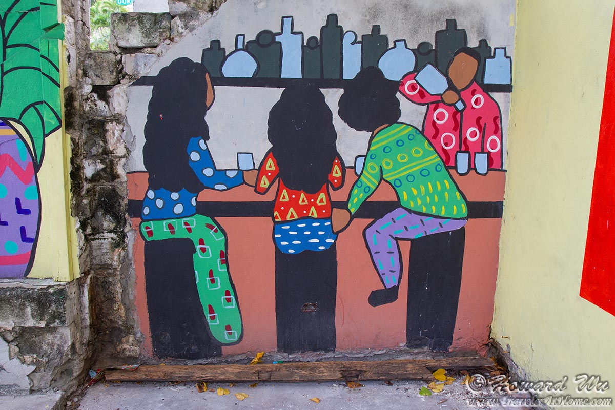 Our onshore excursion was rather limited as we had to go back to the cruise ship. In the commercialized area outside the cruise terminal, I still managed to find a mural that seems quite authentically Bahamian.