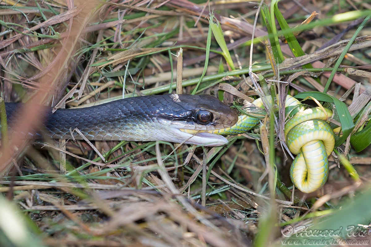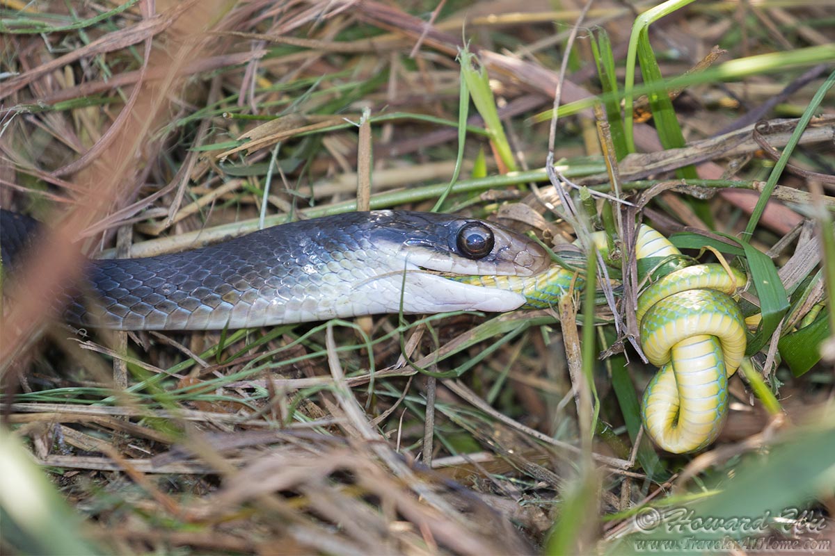 2 Snakes (Everglades Racer eating a Rough Green