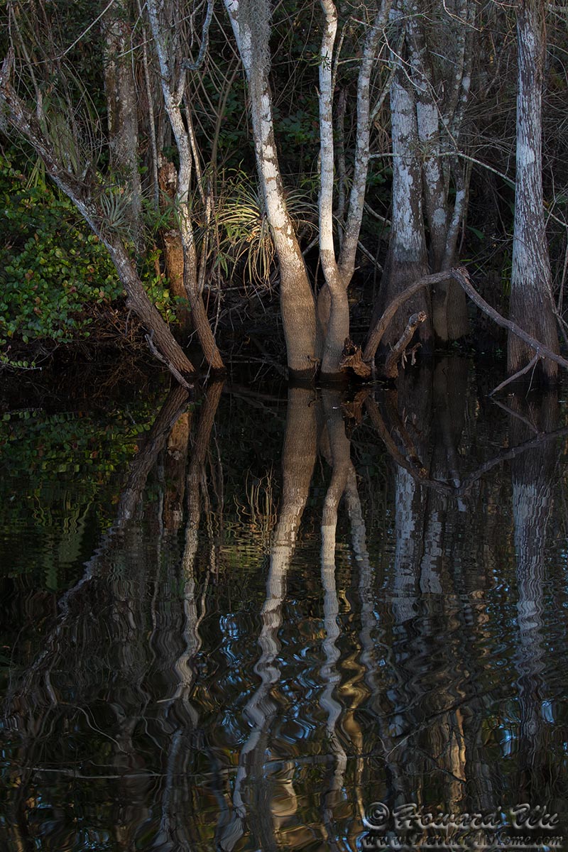 As the sun set, the cypress trees and their reflections make a good impressionistic image.
