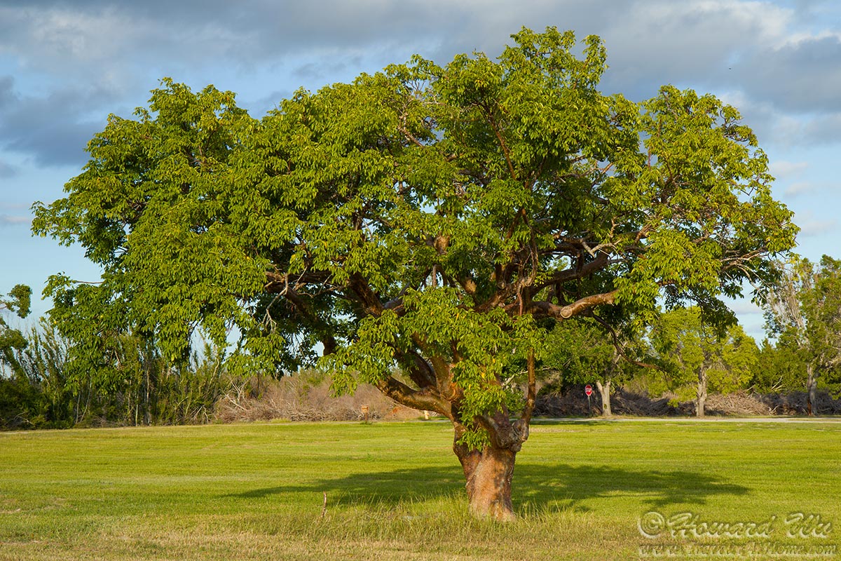 But not before we saw this beautiful Gumbo Limbo tree in a grassy area. Back on the Gumbo Limbo Trail, the trees had to compete with each other and other plants for sunlight and are all lean and gnarled, but this one, probably planted, was all by itself and fully spread in the late afternoon sun.