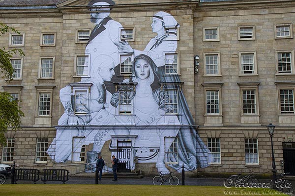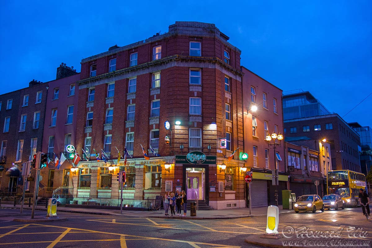 We arrived in the afternoon from Porto and stayed at a lodge in Lower Gardiner Street, just north of the River Liffey. This is the scene of the area on our first night.