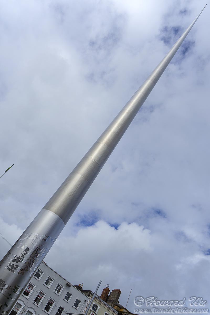 In Dublin we mostly acted like the typical tourists -- the next day (our only full day there), we walked over to some of the wellknown places. The first prominent structure we encountered was The Spire, in the middle of O'Connell Street. Unfortunately this day was rather dreary and the sky was overcast.