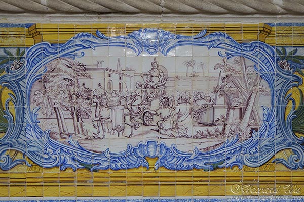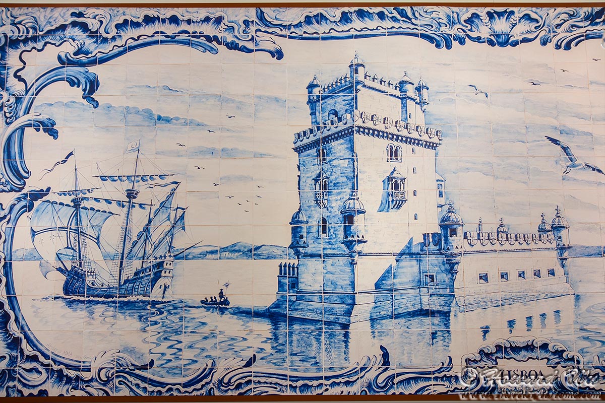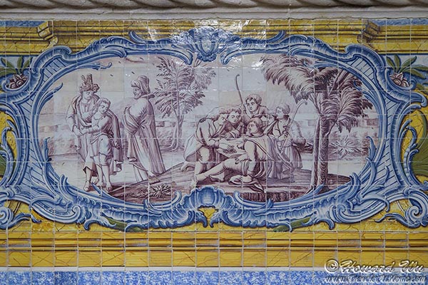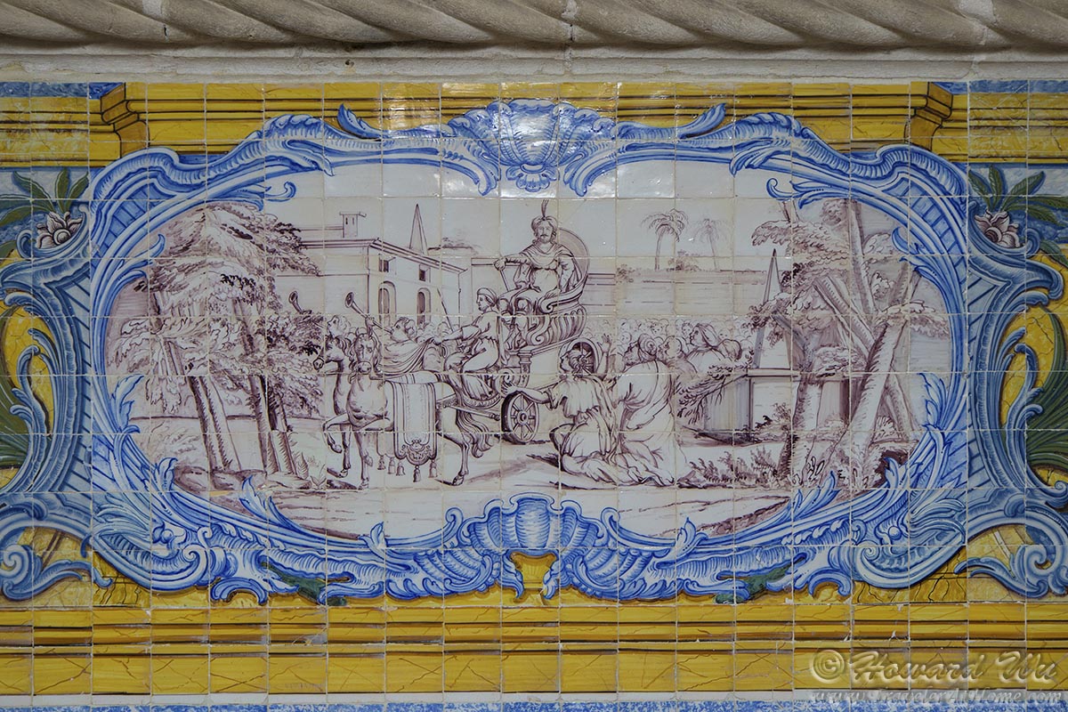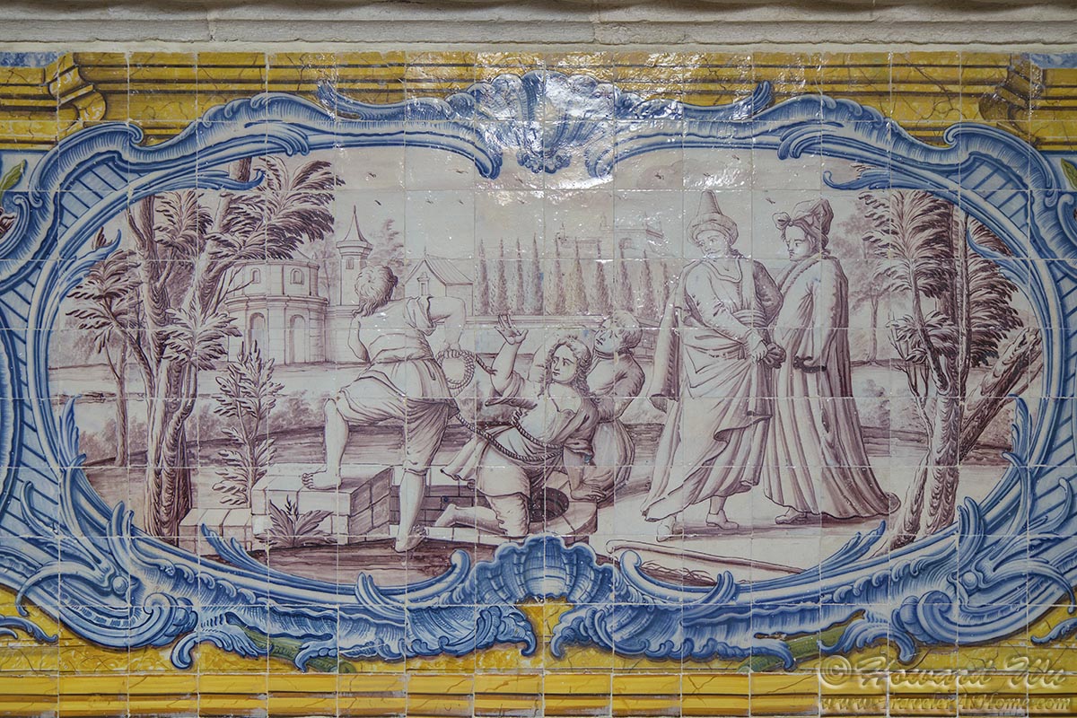 Pictures on azulejo tiles in Jerónimos Monastery Refectory
