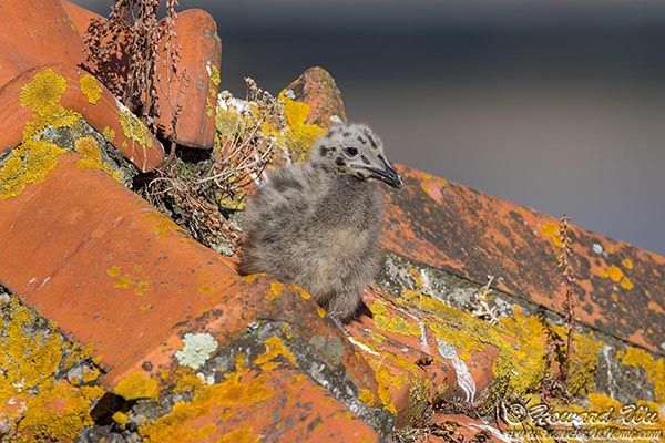 On the roof of a house, a gull family was nesting there. These I am sure are Yellow-footed.
