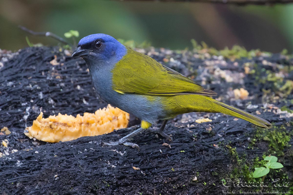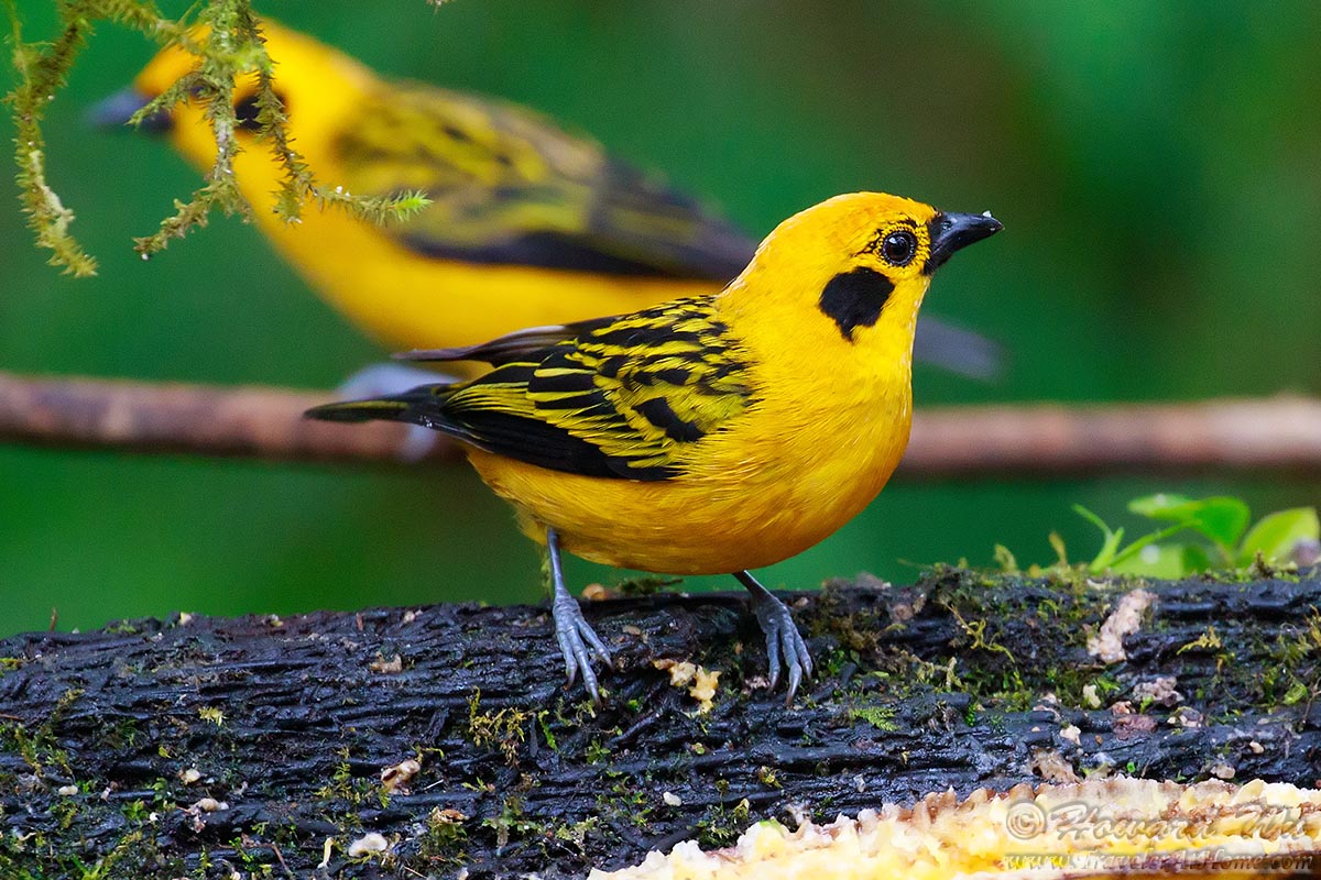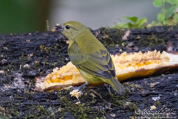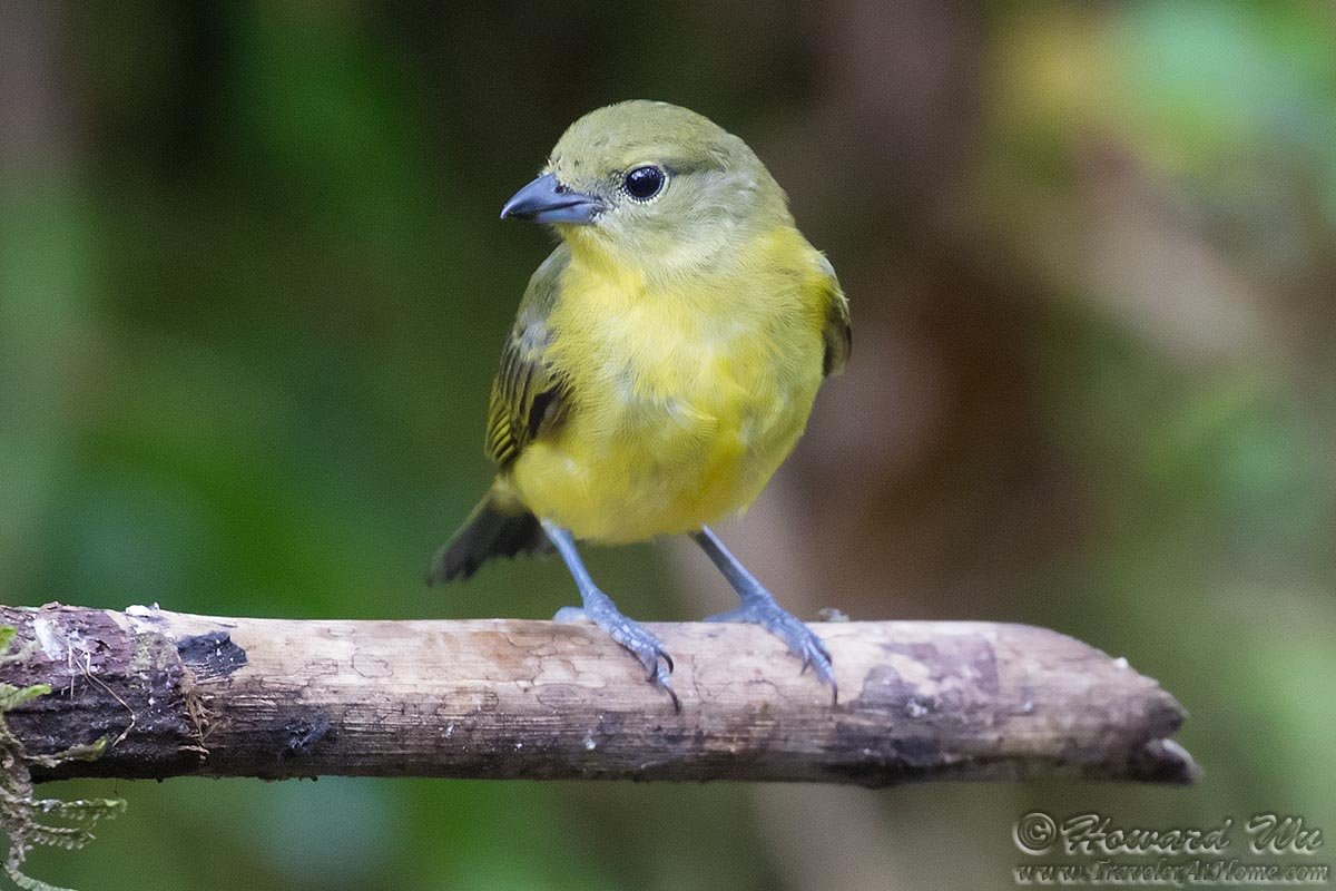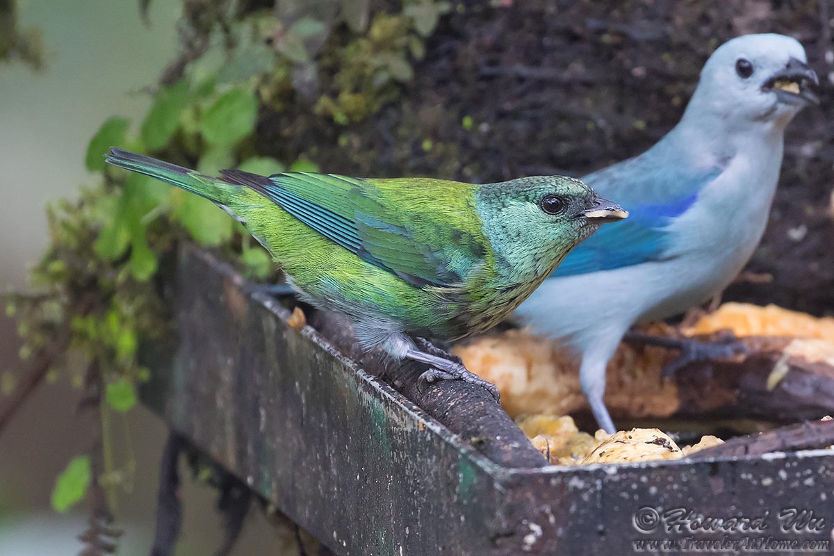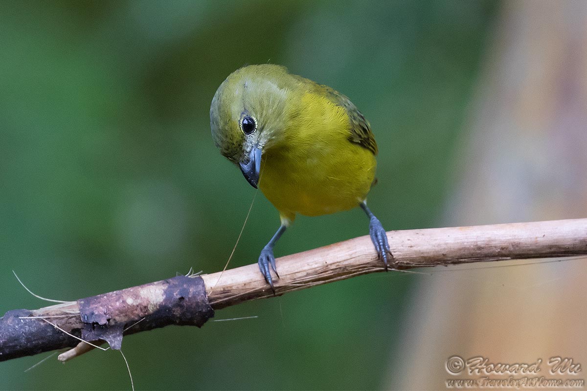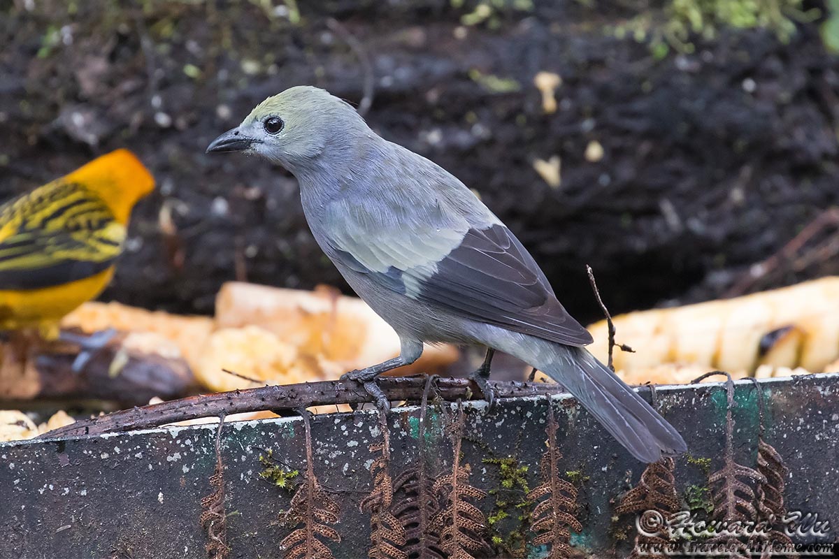 Black-capped Tanager (female) with Blue-gray Tanager in the background