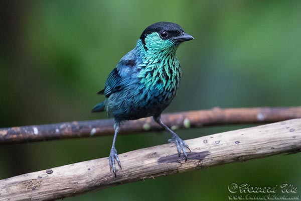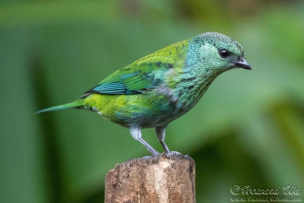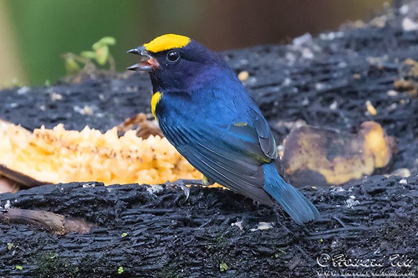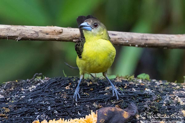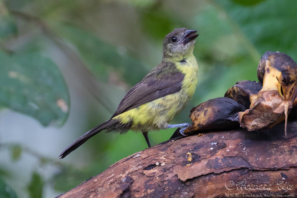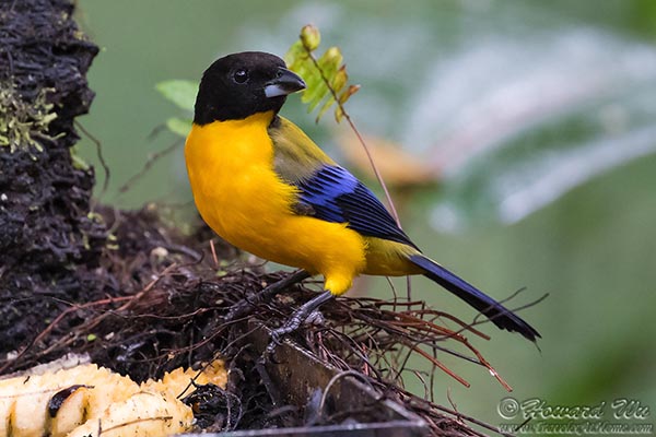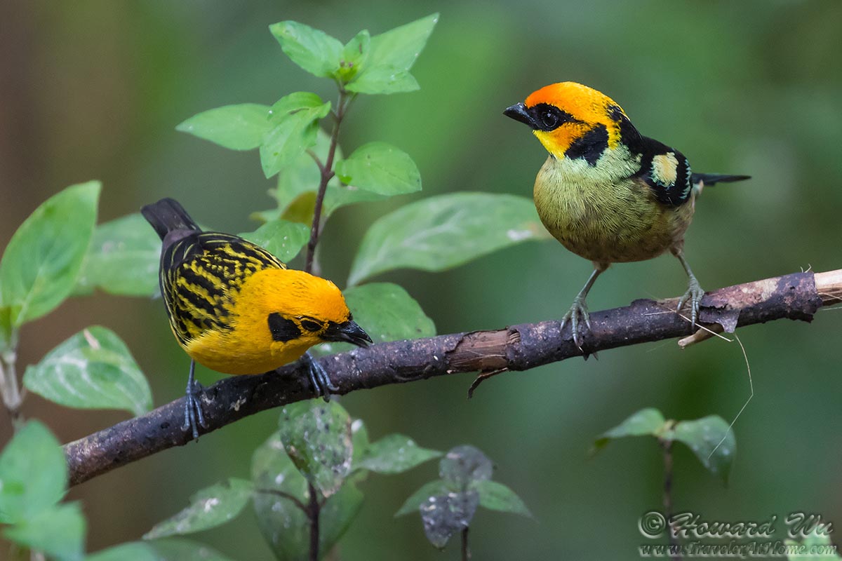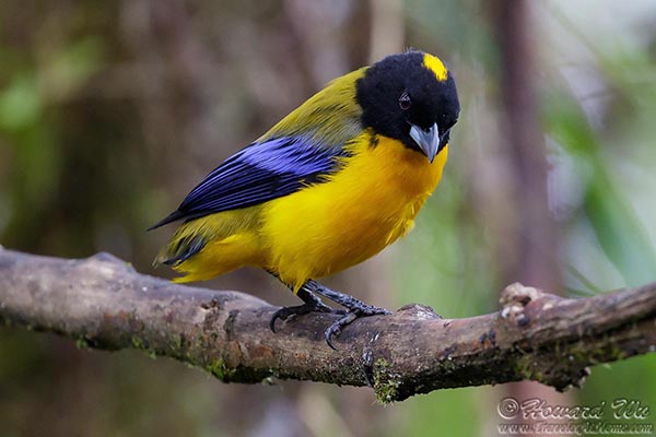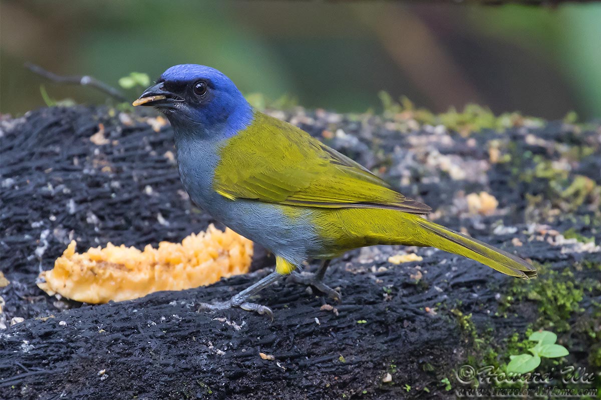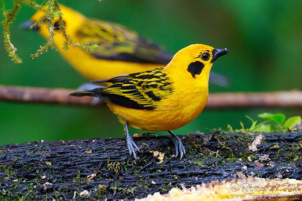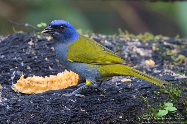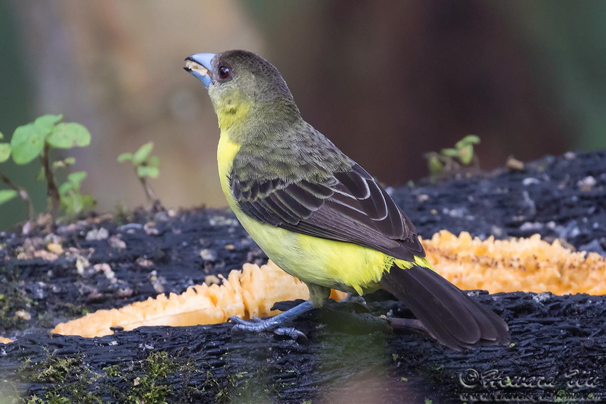 Black-capped Tanager (female) with Blue-gray Tanager in the background