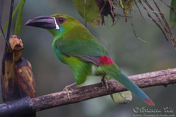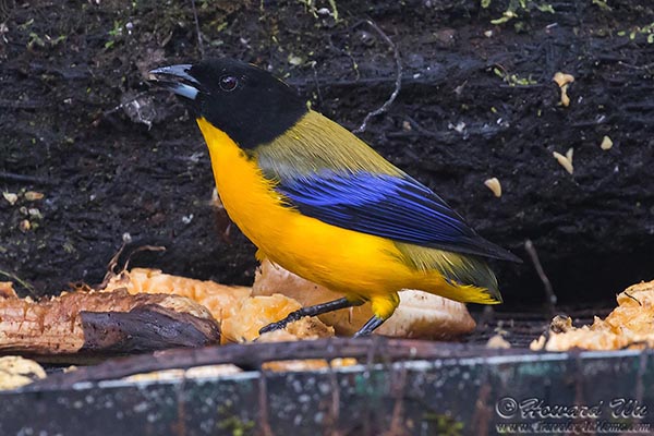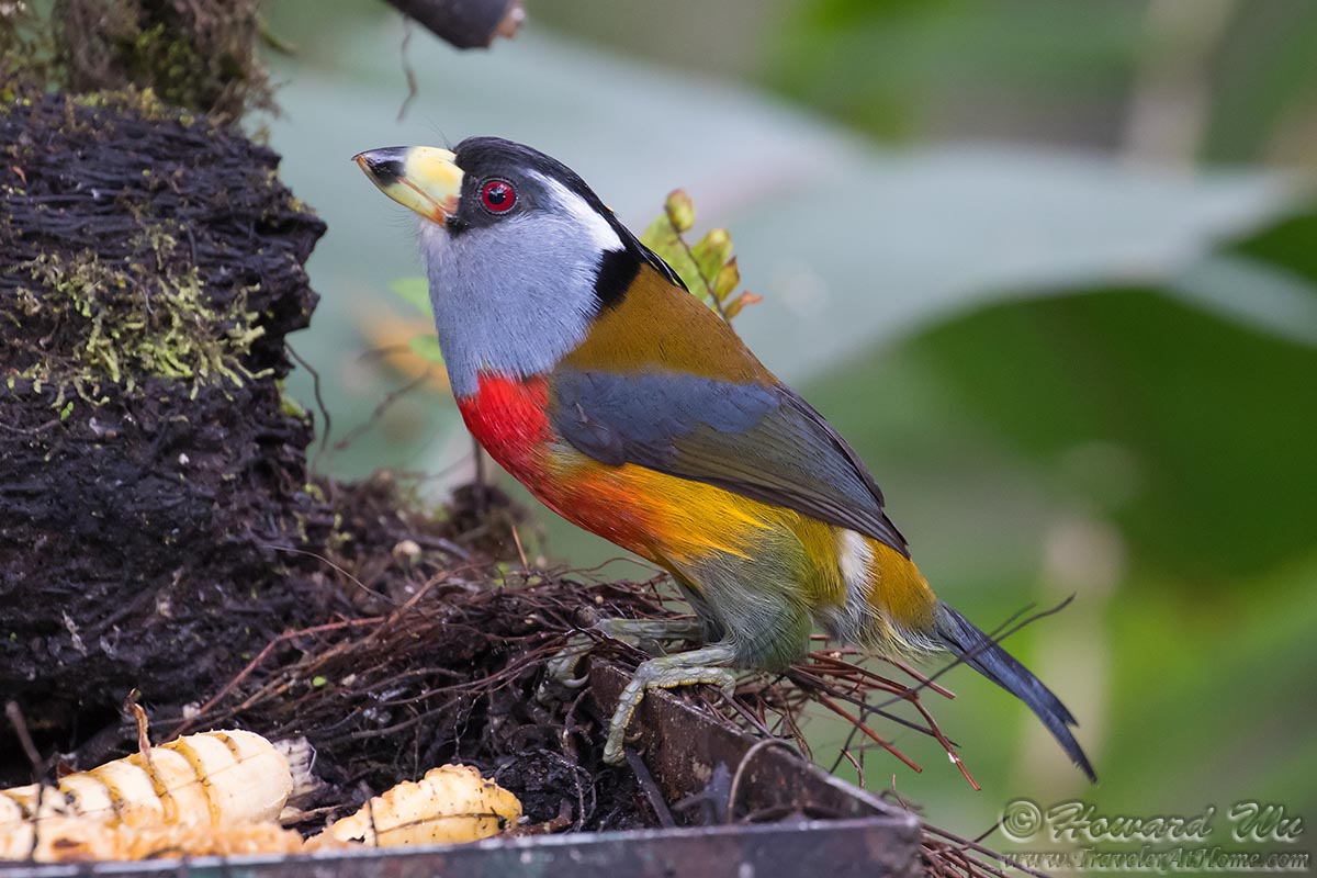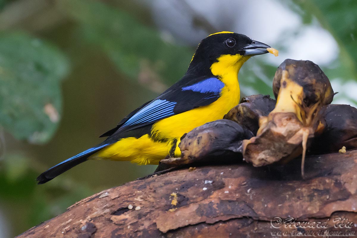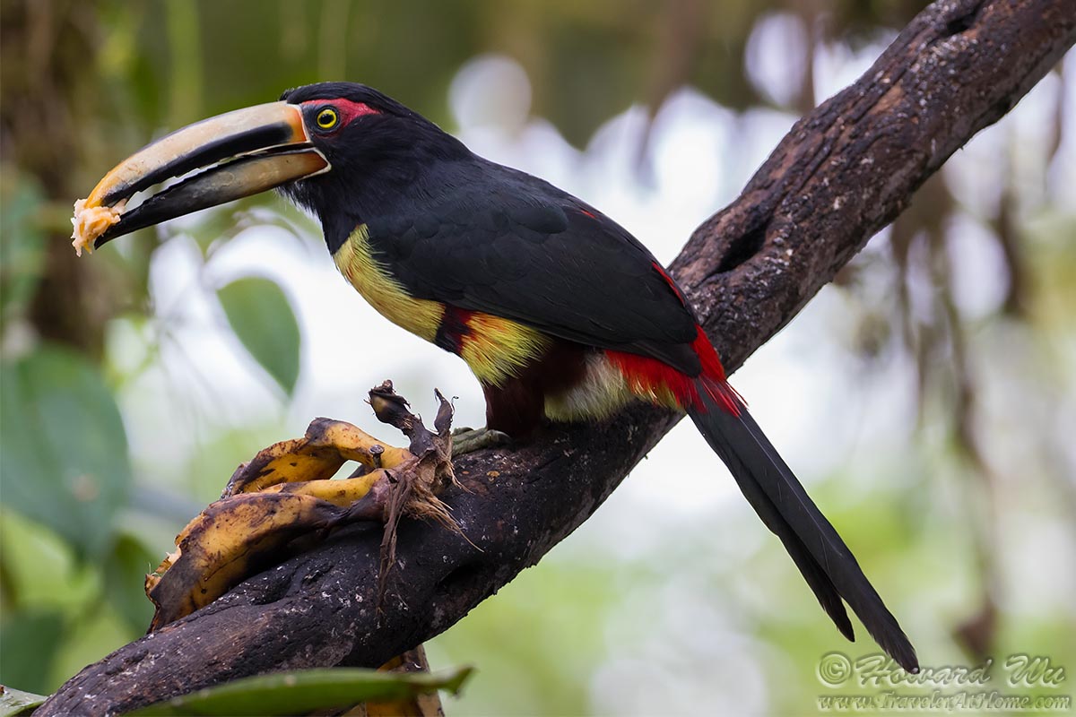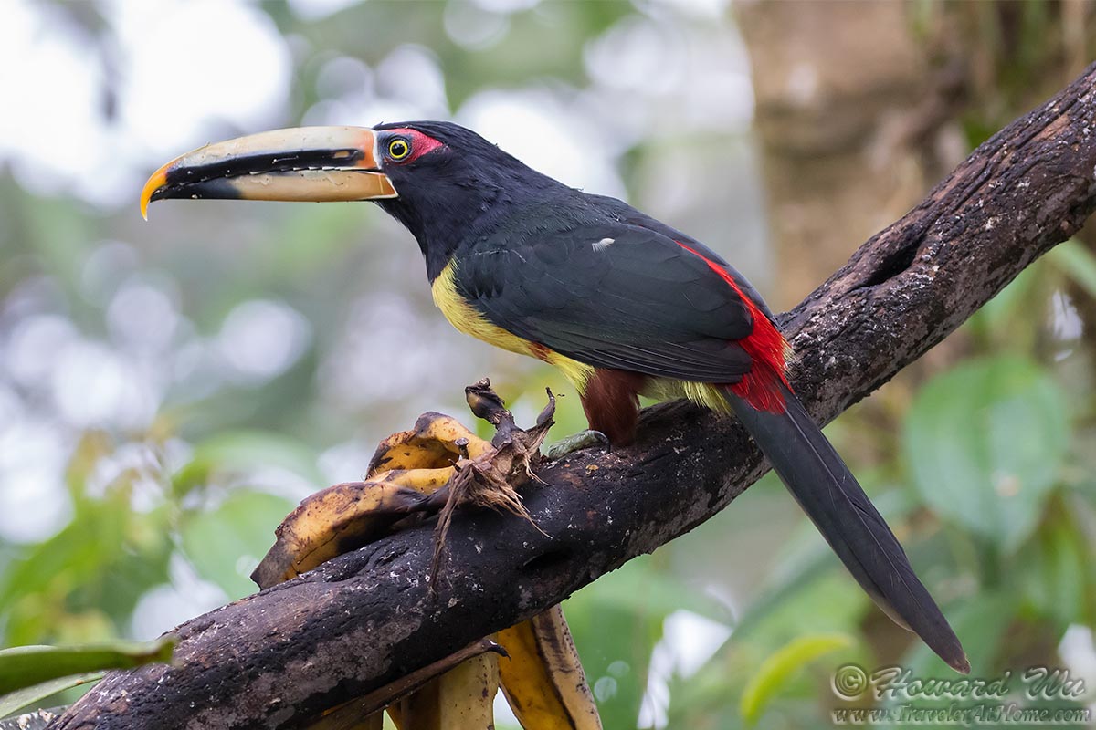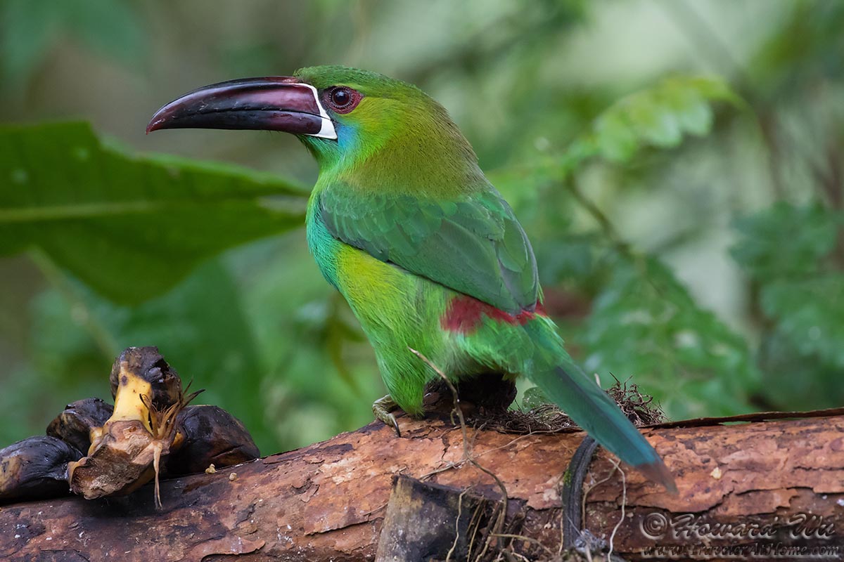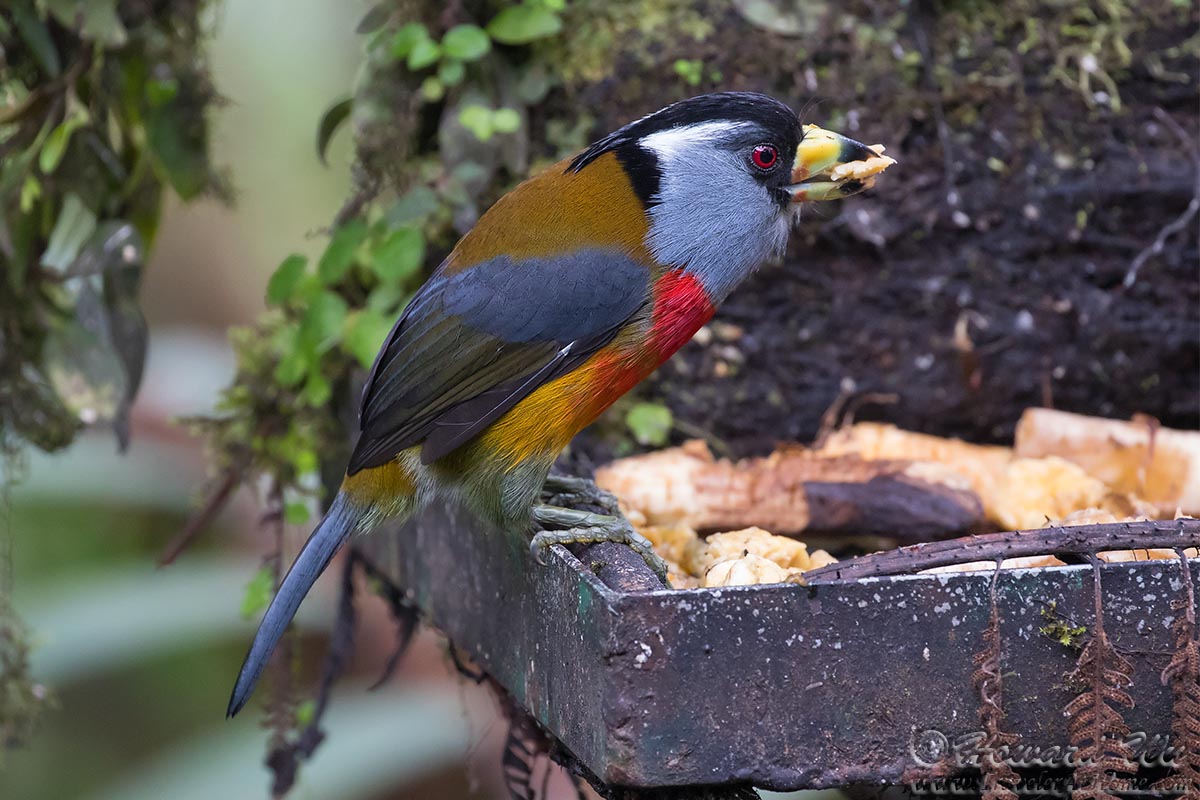 After lunch, it started to rain in the cloud forest. We stopped at a private bird sanctuary next. Here, many fruit-loving birds came to feed, and I frantically fired off my camera and in probably less than an hour (I lost track of time) I counted 16 new birds! It was a breathtaking experience. I will simply post these pictures alphabetically below. With the exception of a few (Blue-gray Tanager, Palm Tanager, Collared Aracari) that I had seen in Costa Rica before, and the Scrub Blackbird which I had seen in Guayaquil, most of these were new to me.