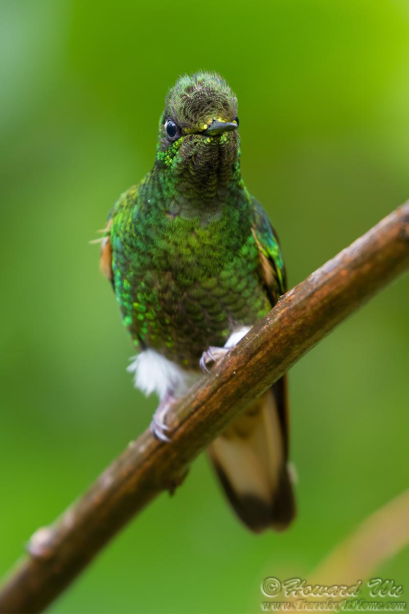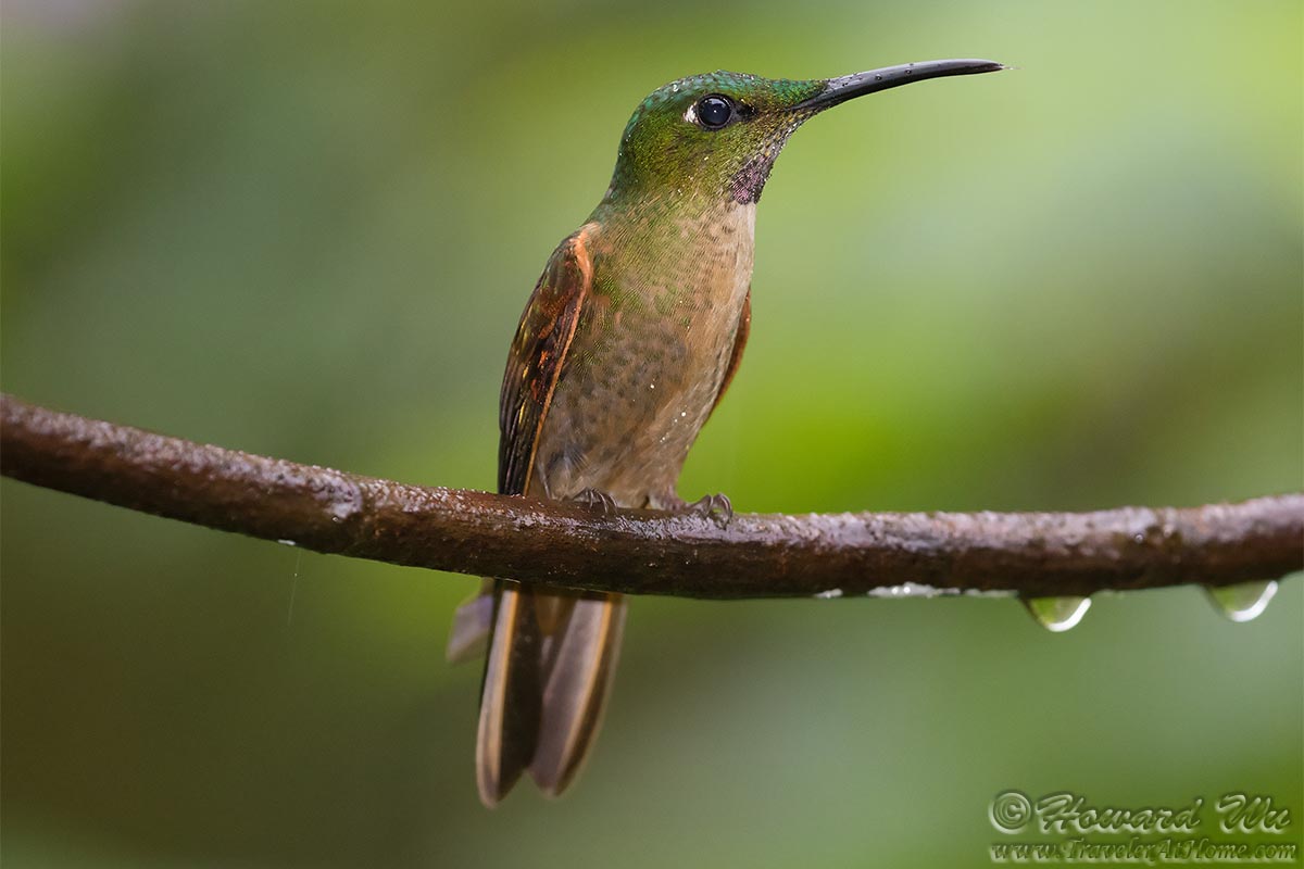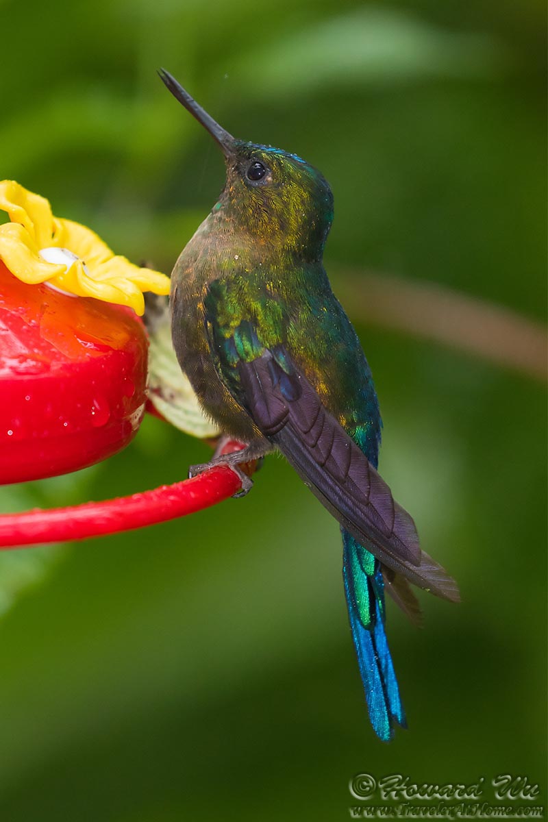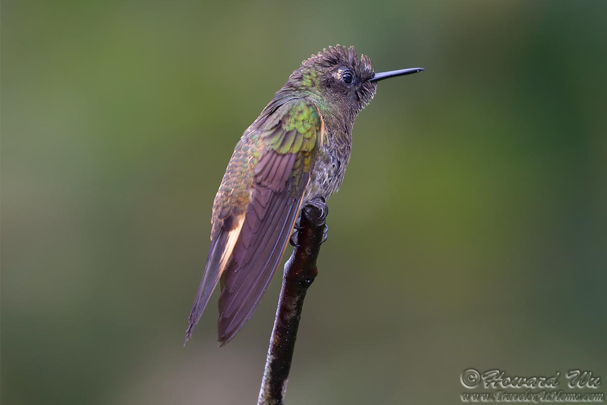 Next, we stopped at a private hummingbird sanctuary. Again, I had another breathtaking experience: the high-octane hummingbirds were flying rapidly about, and I clicked the camera shutter at almost equally rapid speed. I counted 10 new birds, including 9 hummingbirds and a Bluish Flowerpiercer, my only flowerpiercer of the trip, in less than an hour.