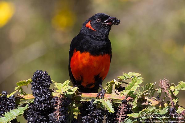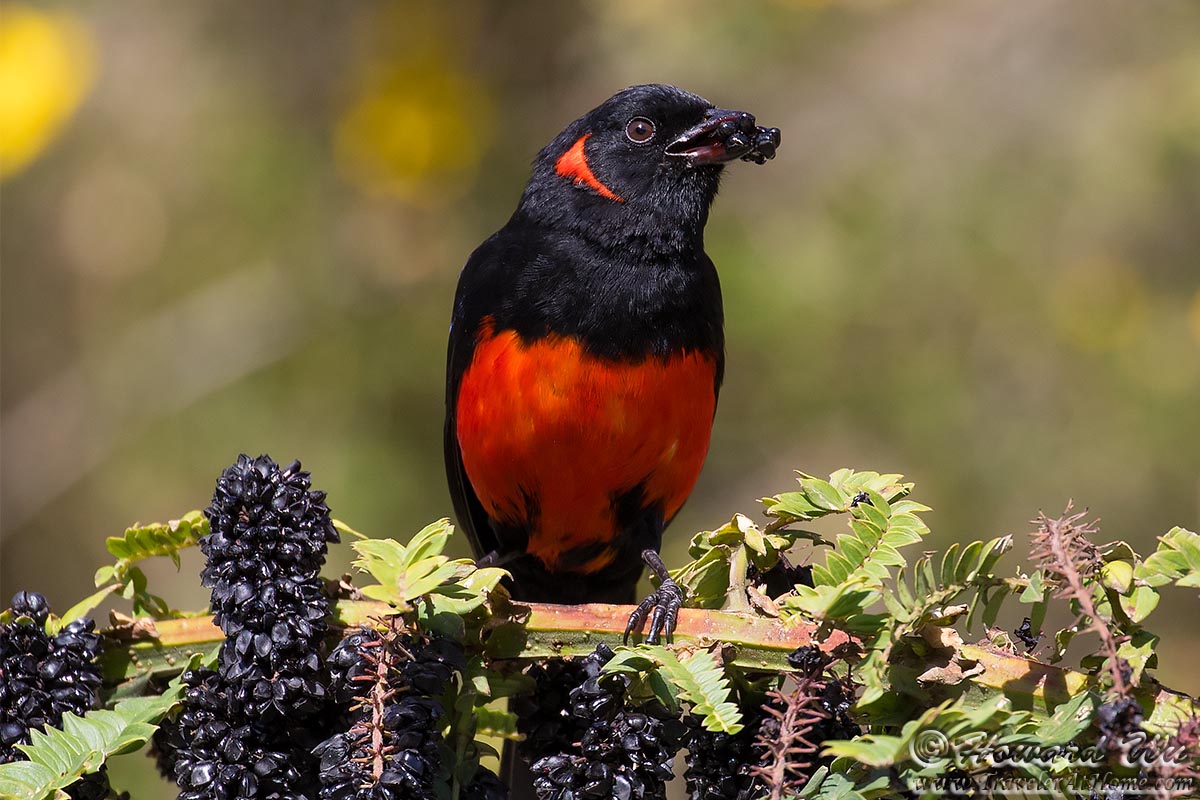 But even during the brief time that we were there, a beautiful Scarlet-bellied Mountain-tanager stopped on a tree branch nearby to give us an excellent look in the bright morning sunlight. It is one of the most wide-ranging and abundant mountain-tanagers in South America, but a new one for me.