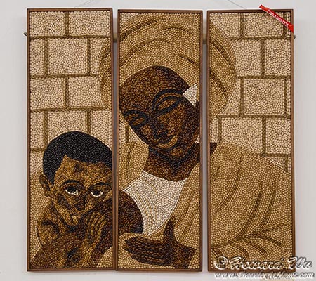 In the courtyard of a the church, we saw some art exhibits made of beans. Quite interesting. The signature of these pieces says "Diego Velez Leon", however, even in this age of Google, I could not find the artist.