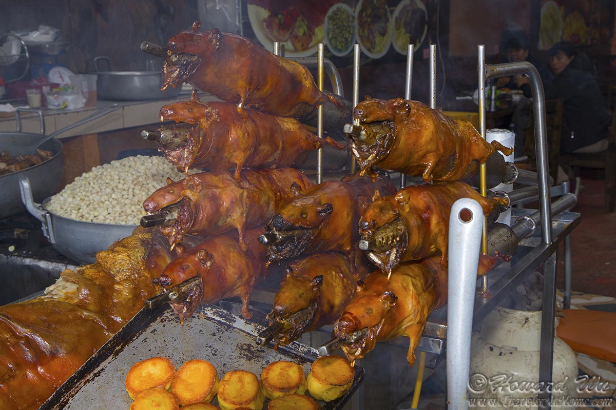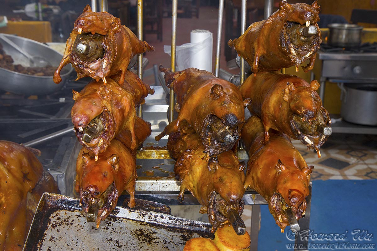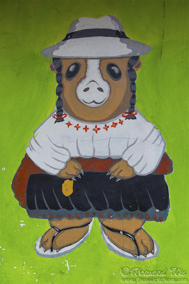 Ah, cuy, or Guinea pig. Before we went to Ecuador (and South America for that matter), we had heard about how they eat the cuy. We had never eaten a rodent before! We wanted to try it just for the sake of it. In both Guayaquil and Cuenca, and later in Quito, we asked people if they like to eat cuy. It is curious to note that people in Guayaquil will say "yeah, it's something you should try, but ... " (with cringing looks on their face), while the highland people will say definitively that they like it.