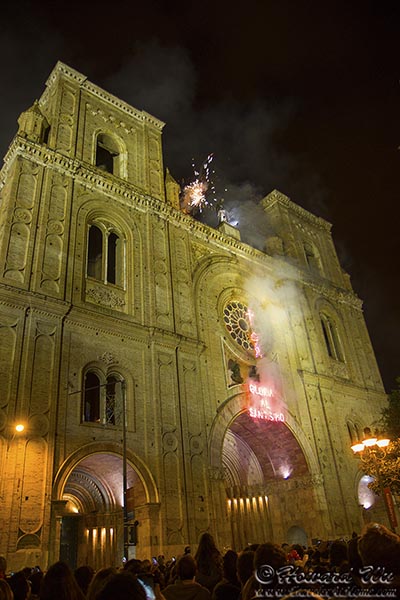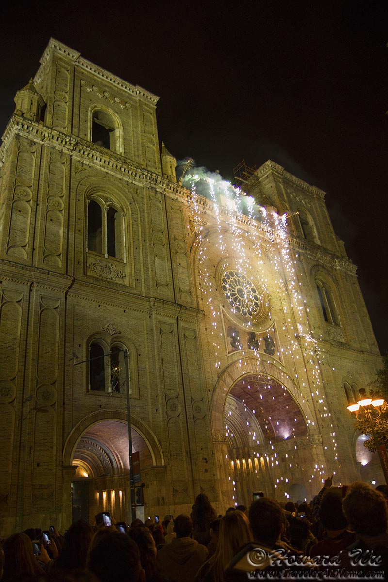 Unbeknownst to us, the Corpus Christi festival started at the time when we were in Cuenca. This was one of the pleasant surprises of travel, and we were thrown into a cultural event. On our last night in town (May 31), the celebration kicked into high gear: the vendors lines up around the main plaza, Parque Calderon, mostly selling sweets. At night, a fireworks show started at the New Church. It was a feast of the senses, and put a climactic ending to our stay in Cuenca.
