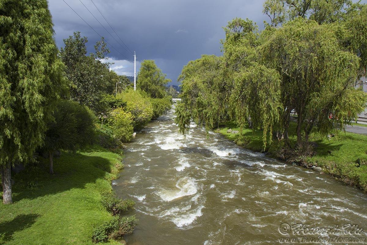 The word "Cuenca" in Spanish means a basin made by a confluence of rivers, and Cuenca, Ecuador is at the confluences of four rivers (note the plural form of "confluences", the four rivers do not come together at a single point). Of these, Rio Tomebamba is the one that divides the historical old town from the new and is the most easily accessible one (coming from old town).