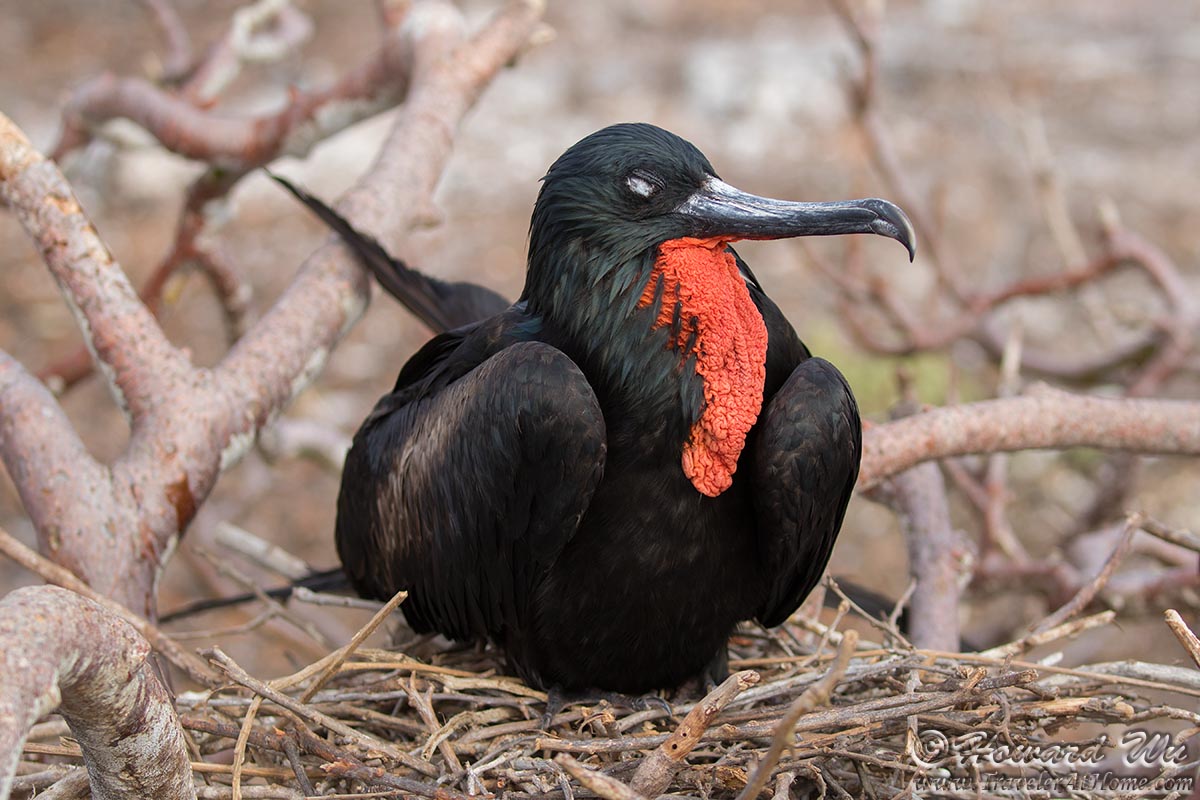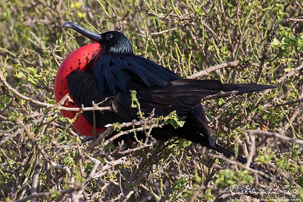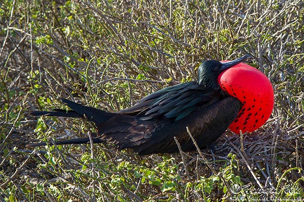 But the stars of Genovesa Island are the nest Great Frigatebirds. Here they nest in the bushes on the beach and some males fully inflated their gular sac ("throat pouch"), giving us excellent views.