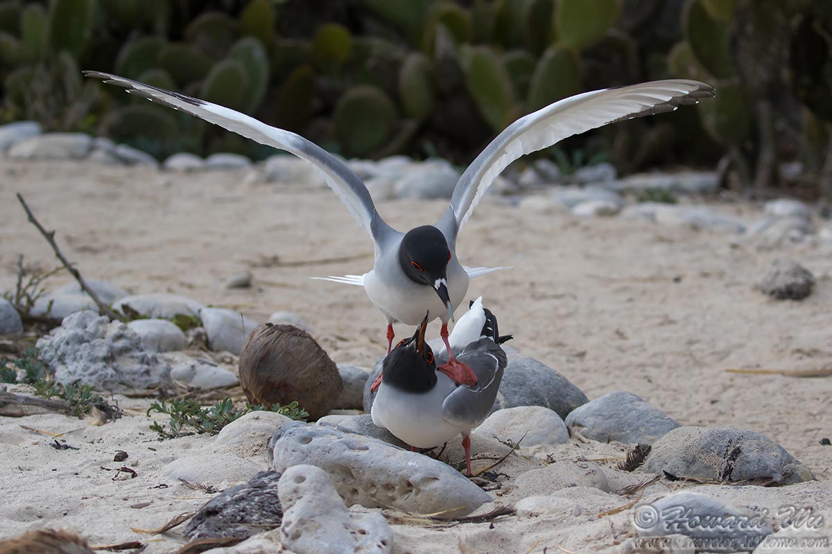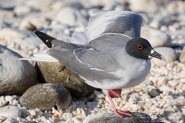 Here, Swallow-tailed Gulls, another Galapagos native and perhaps one of the most handsome gulls I have seen, were nesting and gave us great close views. These are the only nocturnal gulls in the world, feeding on squid and small fish at night to avoid the harrasment of frigatebirds. They are equipped with the largest eyes of any gull for this habit.