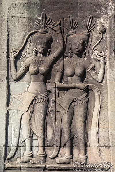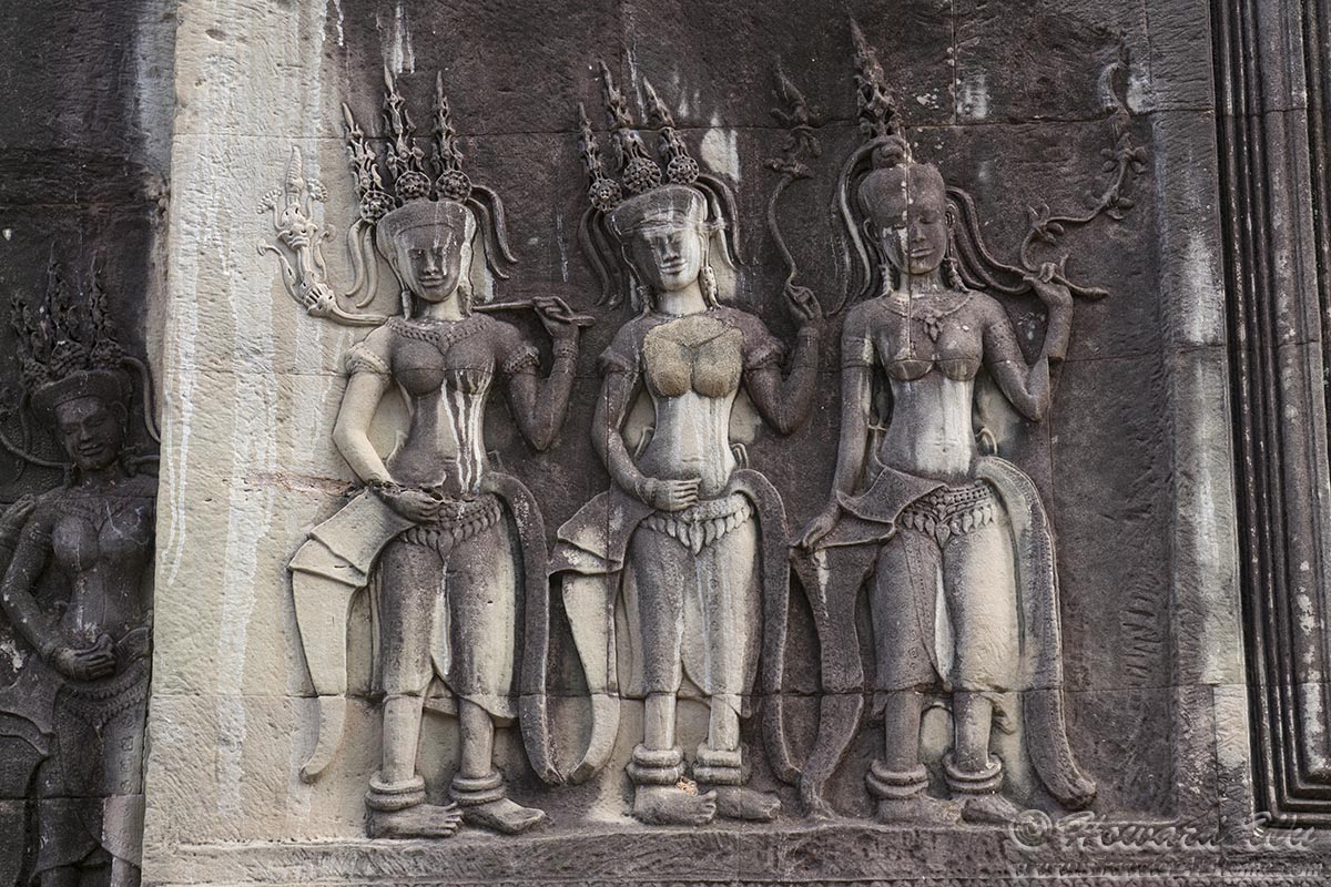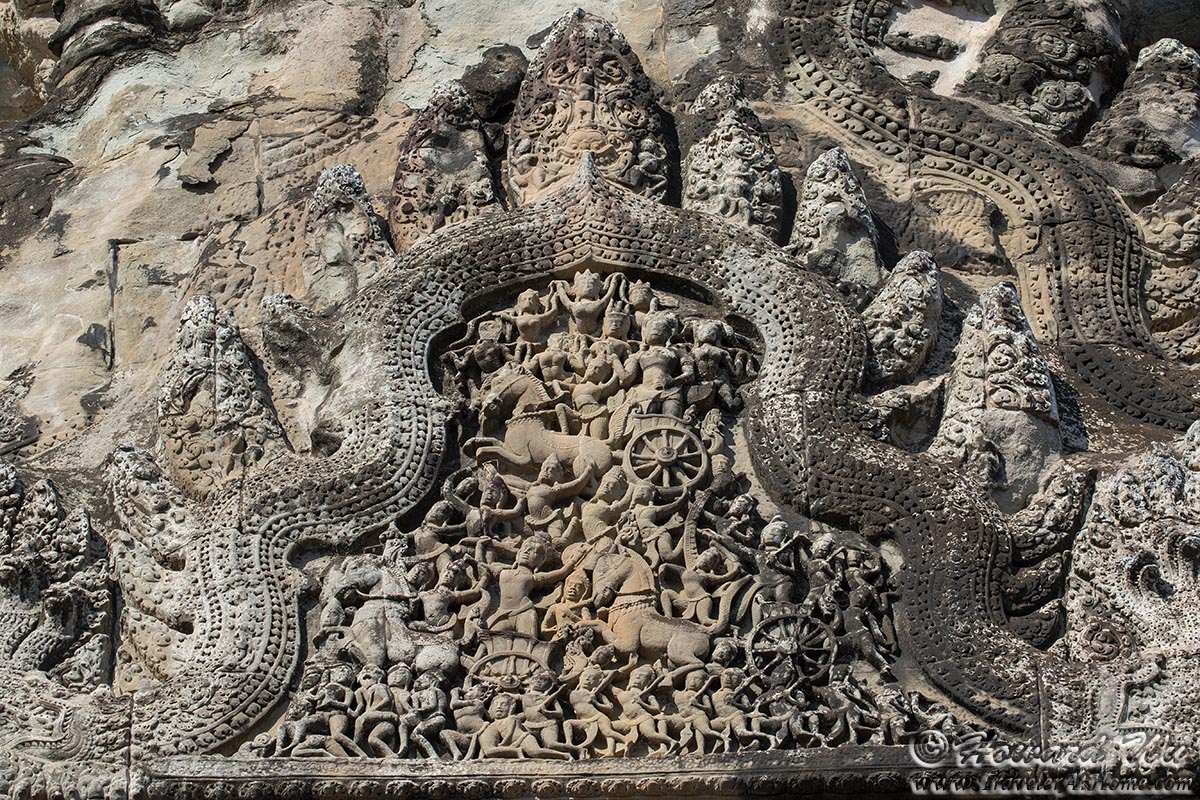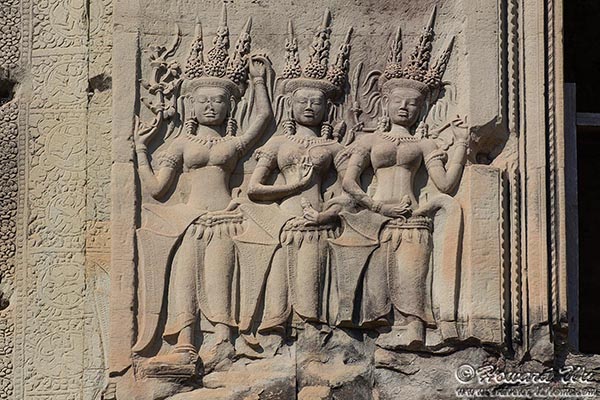 On the walls of the temple are many bas-reliefs and carvings of Hindu mythologies.
